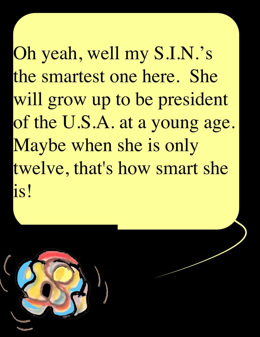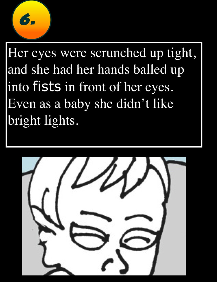 She cant talk, but she can write, but she always has a drawing next to what she is writing about.