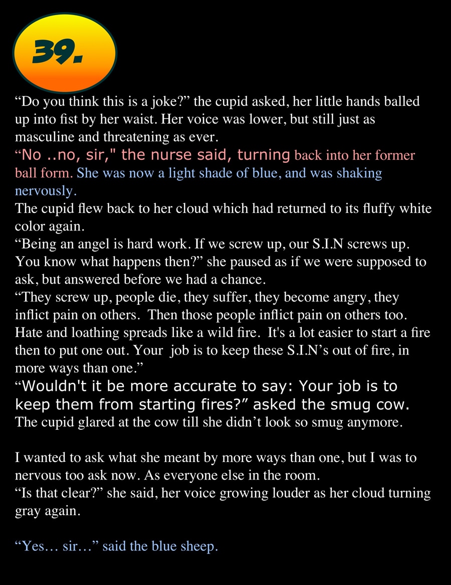 The story is narrated from the point of view of a Guardian Angel named Charlie.