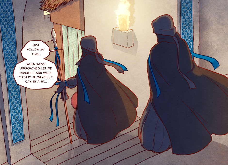 This is the first time that Kate Brown, who usually does rough layouts and first-pass colours for me, has taken on the majority of the work, including detailed roughs and a large amount of finished linework! There's more about how we split up the tasks on my Patreon ^_^