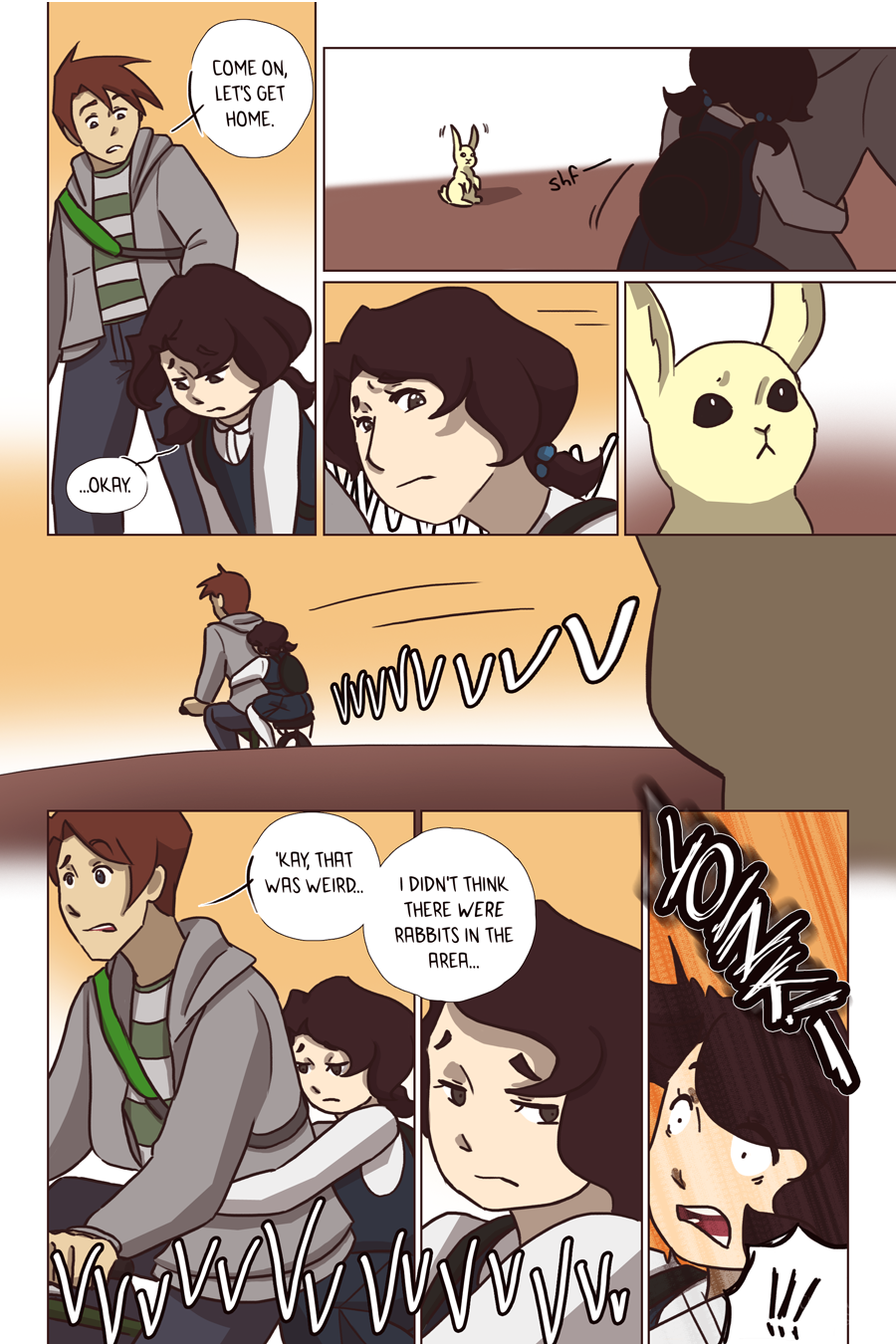 In which one normal afternoon two kids--brother and sister--head home from school...