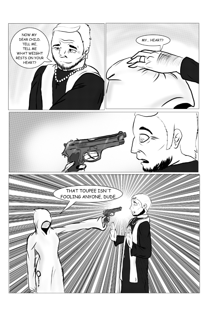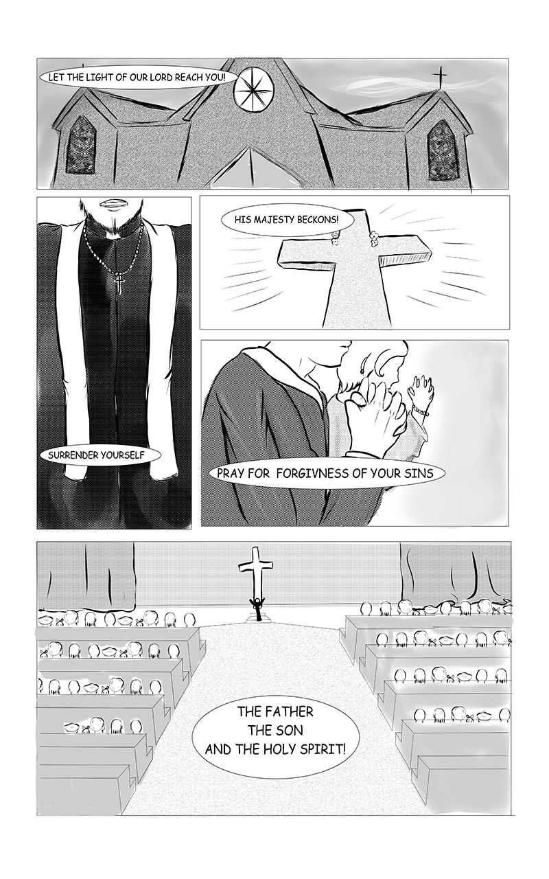 The night was holy, or so it was at first glance. A stranger walks in and all Hell breaks loose.