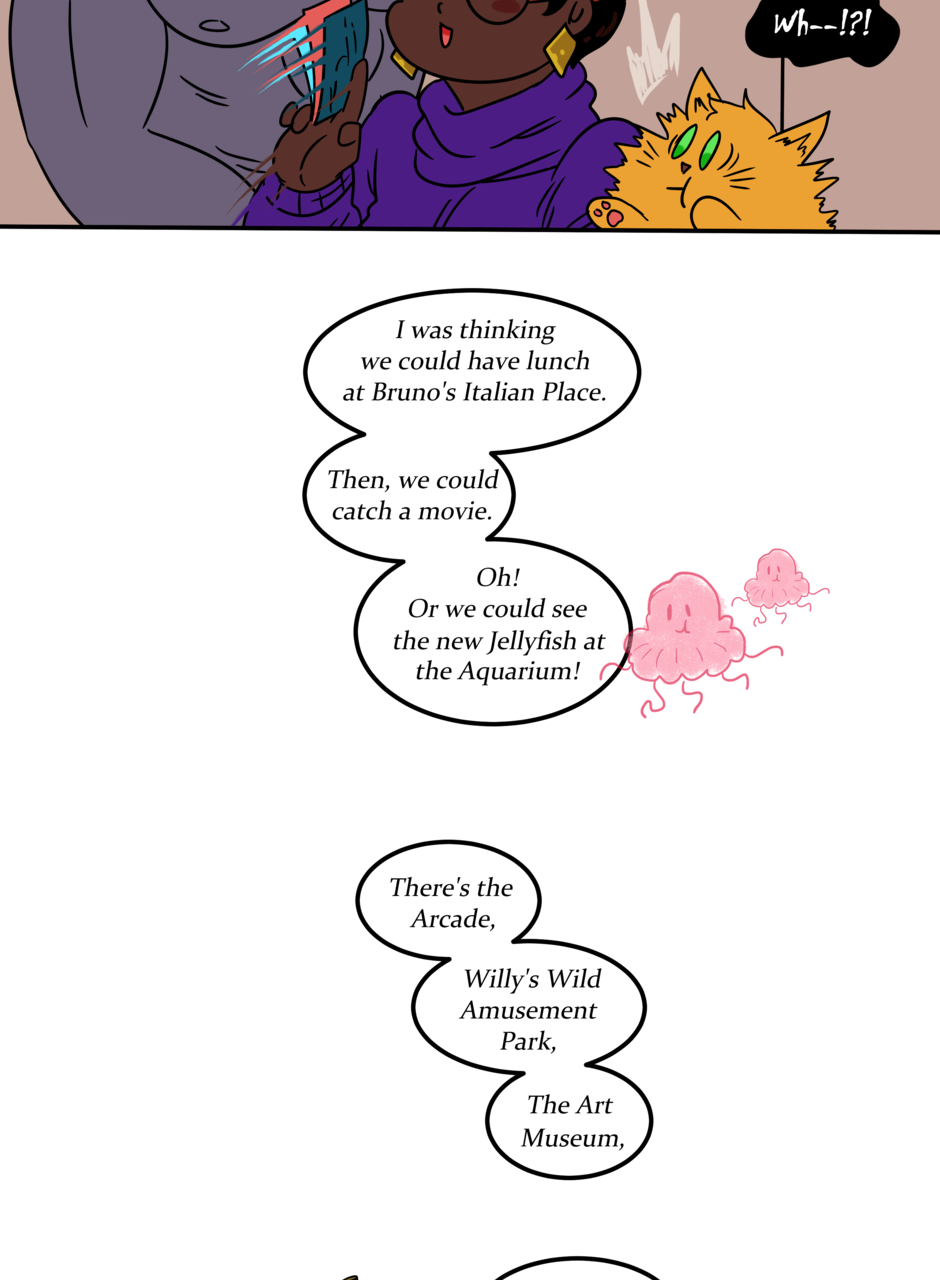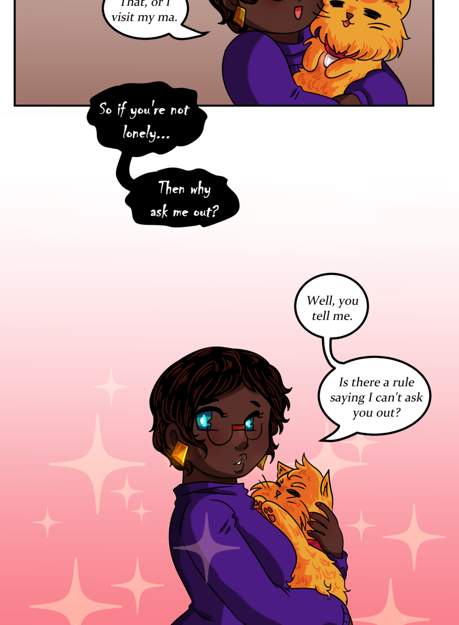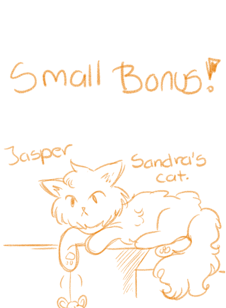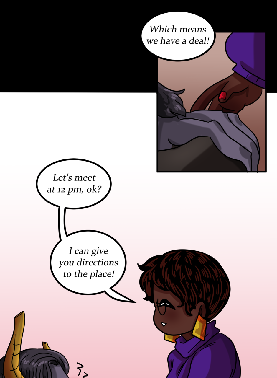 Omitted Dialogue: Adonis: I will take your soul to swirling fiery pits and cursed existences. Sandra: -finger guns- Kinky. -- Hi there lovelies! I hope you've enjoyed this update! There should be another update coming next week, so stay tuned~