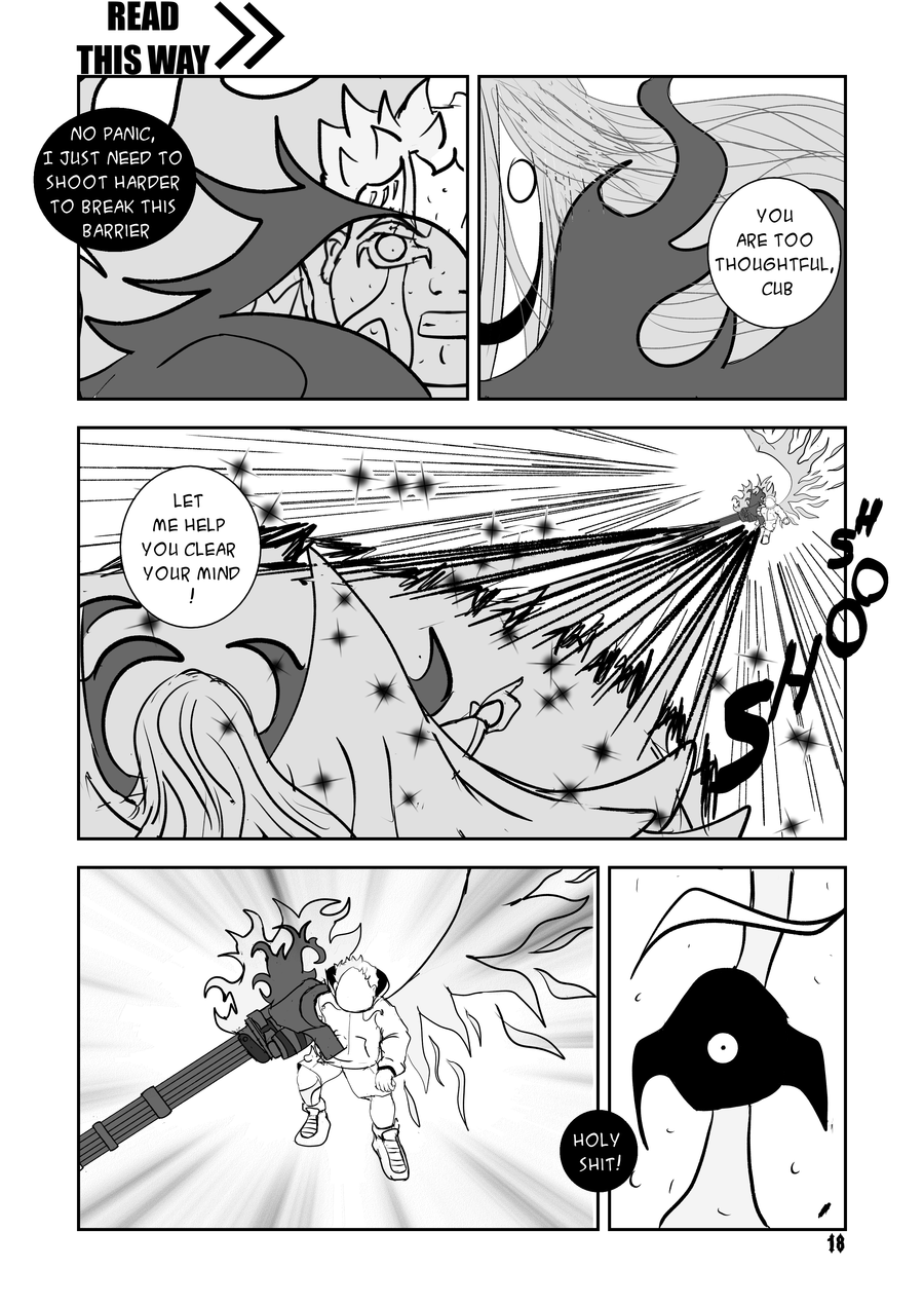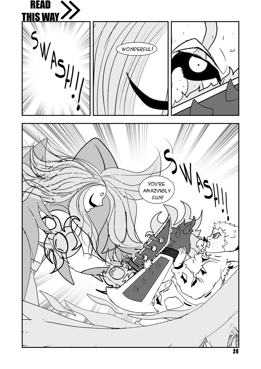 Despite Lite's unpredictability the angel has always been in control of the battle. When the situation seemed lost Hellt resurfaces with a right attack.