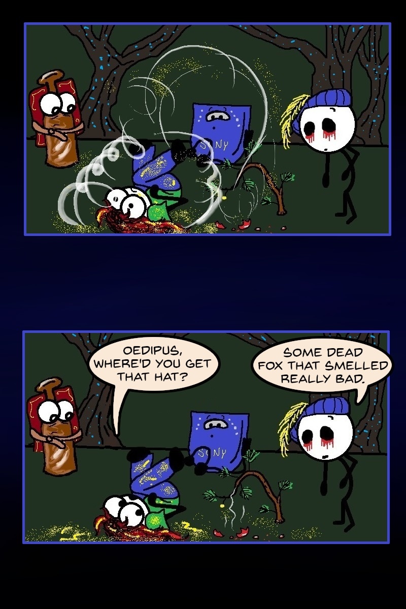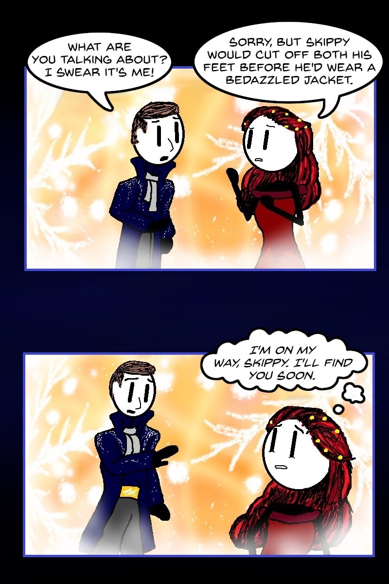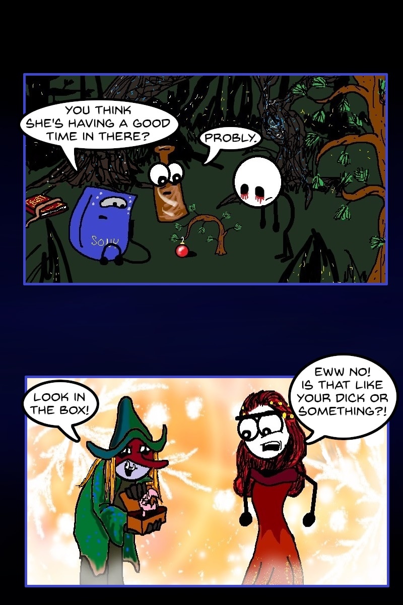 The craptastic adventures of Jirr Burns. Joined by Oedipus, a talking beer, the Boogie Man, and of course, her husband, Skippy, Jirr travels to otherworldly places, conquers evil, and usually ends up at Denny's the next morning to nurse her hangover. This webcomic contains alcohol references and sometimes swearing.