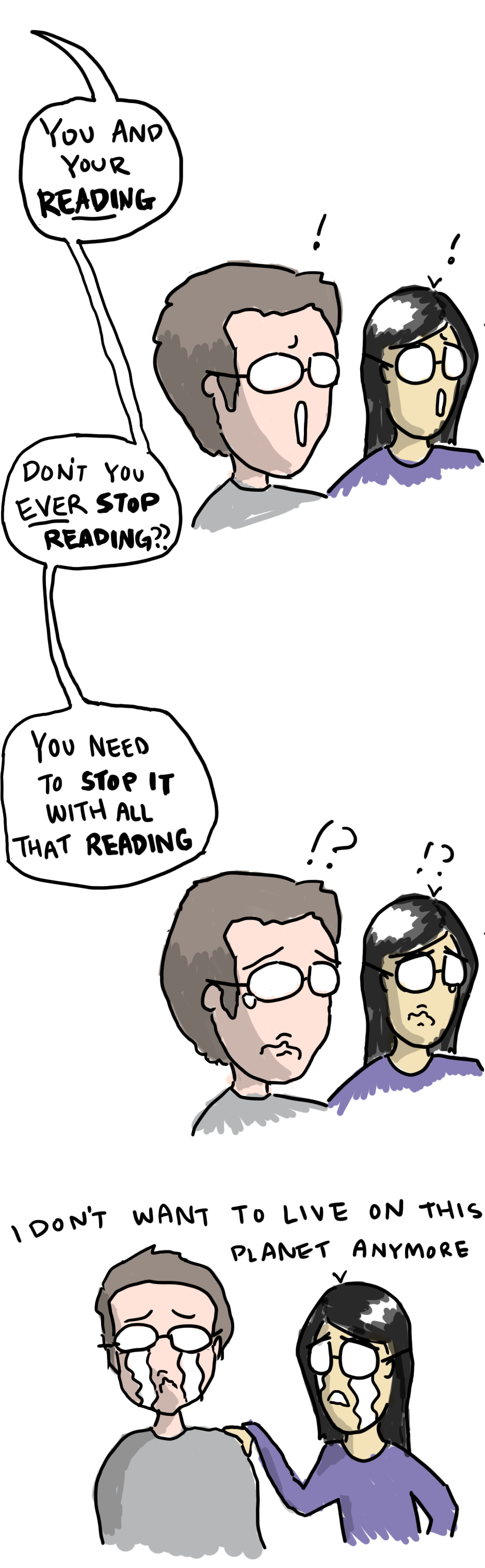 this really happened. kind of funny in a sad way.. but who would ever tell their kid to stop reading!!!?!