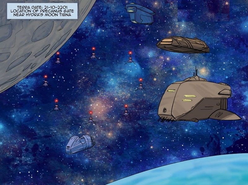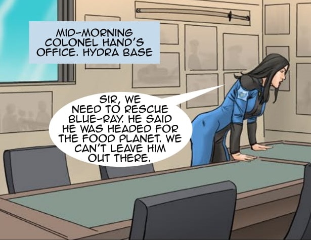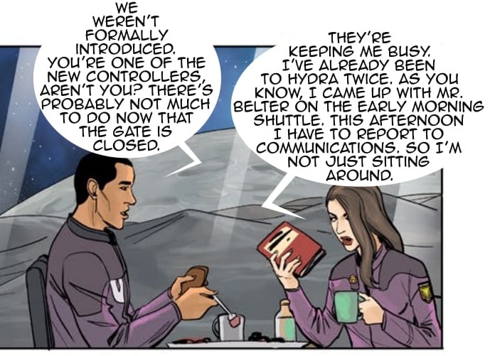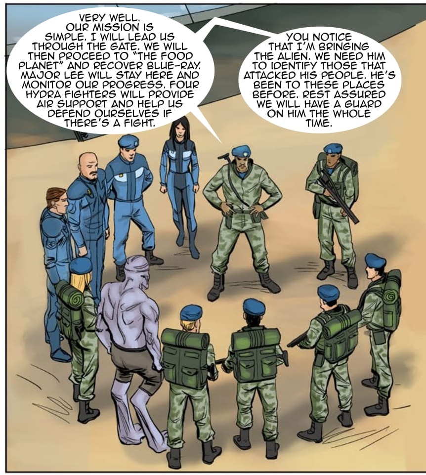 Colonel Hand personally leads a search party to recover Blue-Ray from his last known destination - The Food Planet - beyond the new gate in the Precanus System. Marcus is attracted to Sue and opens up to her about his past.