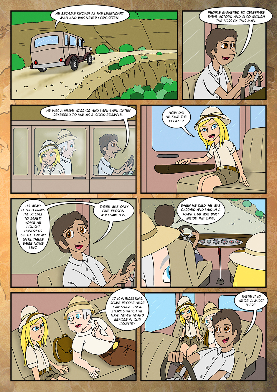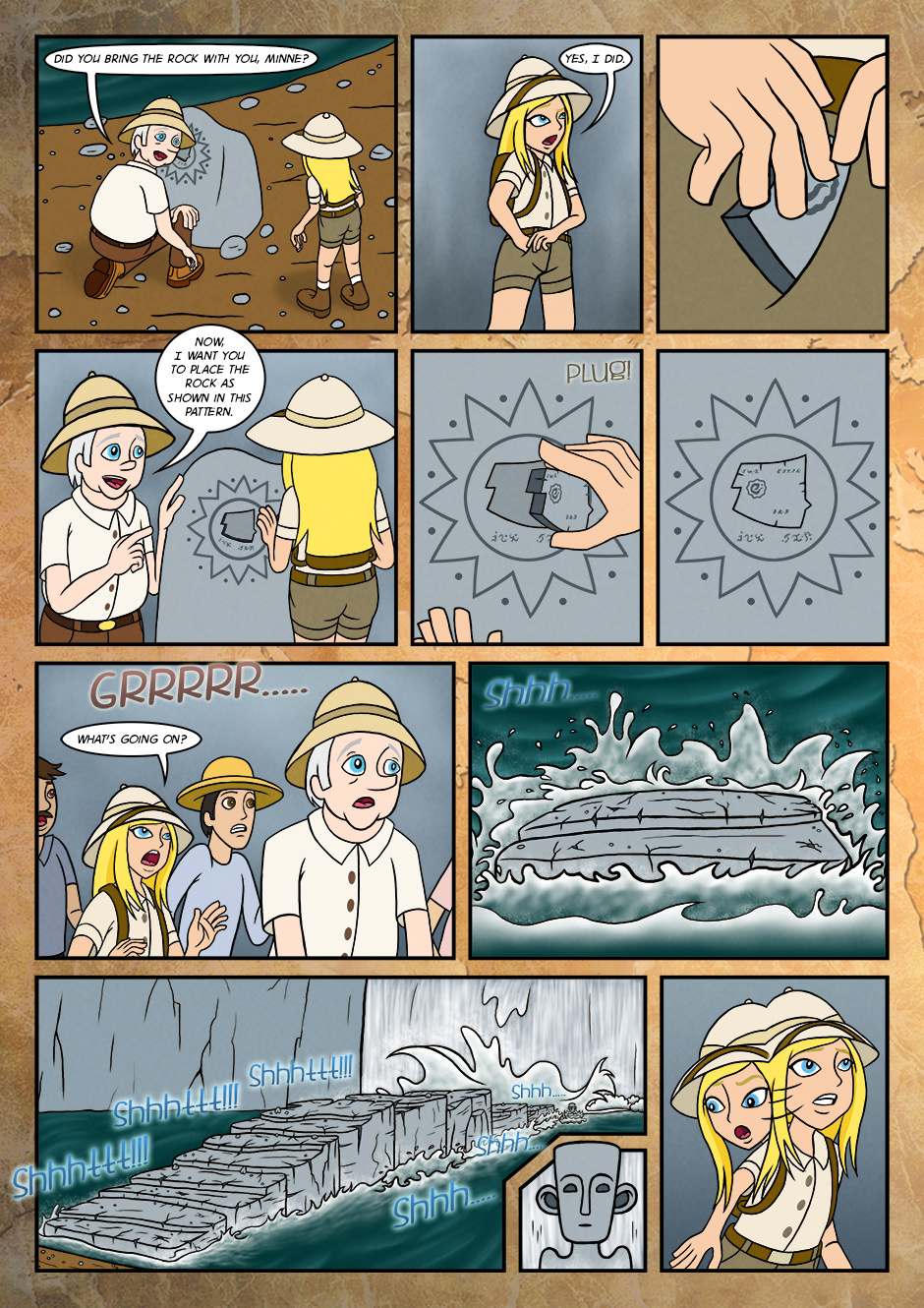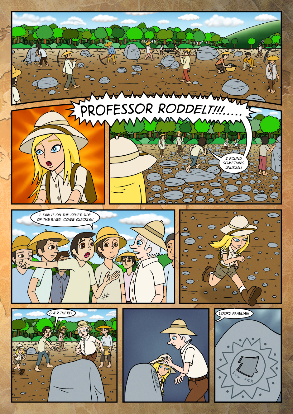 As her adventure for the first time, she went along with grandfather and assisted him to find the objects that were buried long time ago.