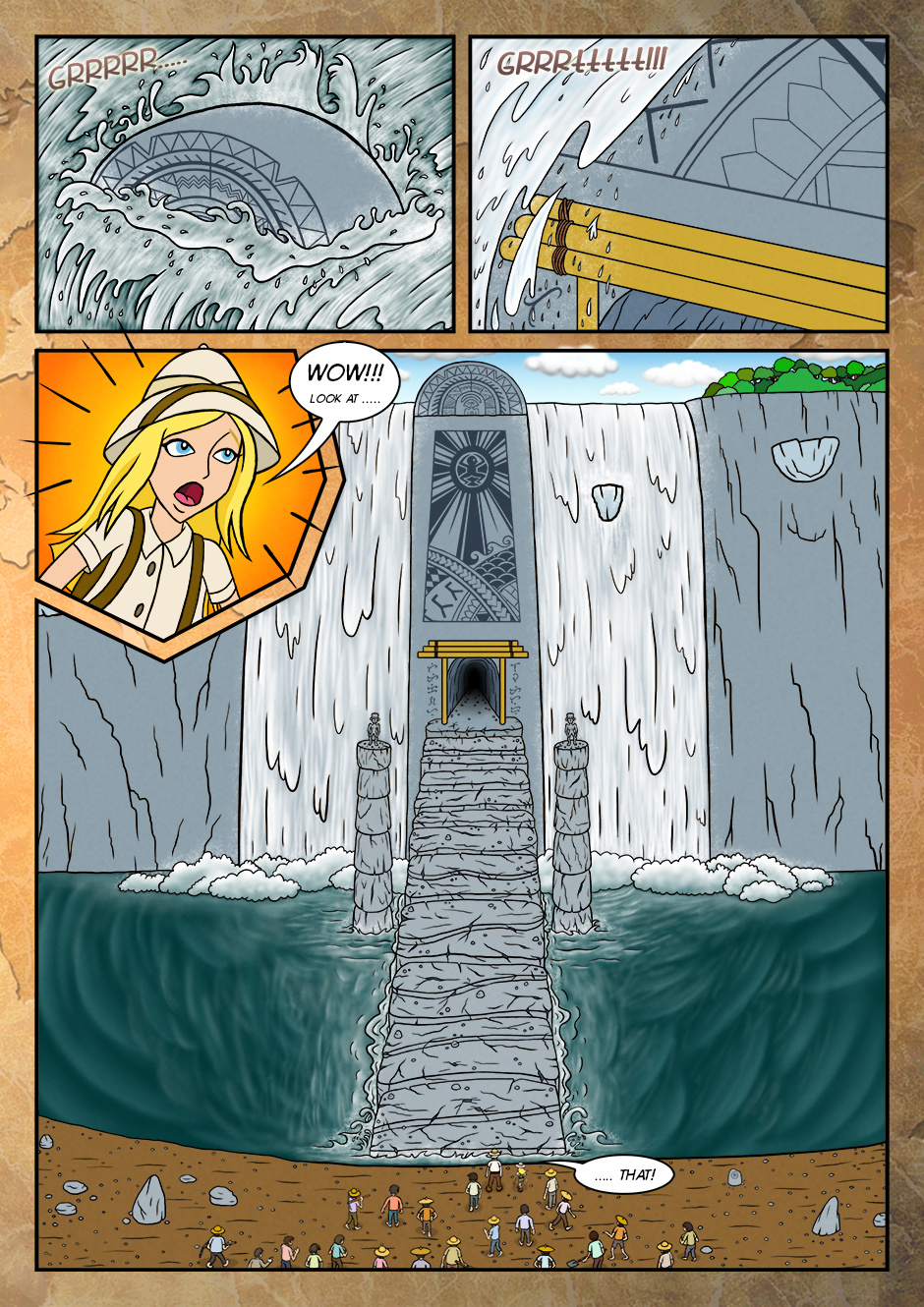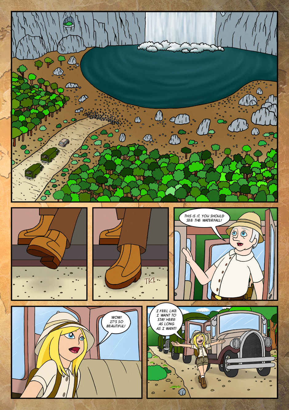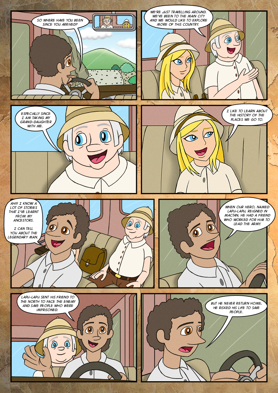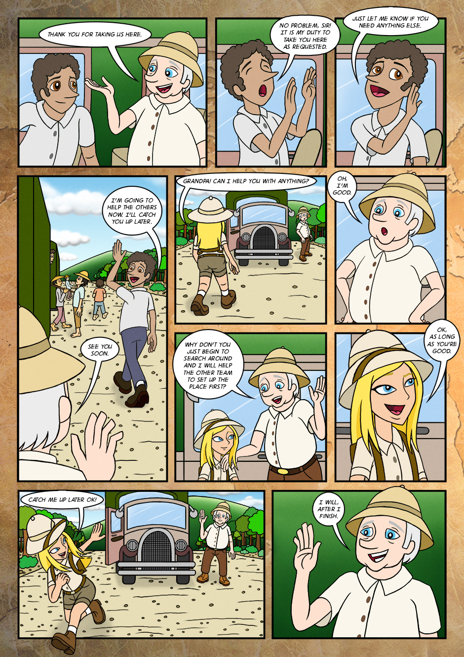 As her adventure for the first time, she went along with grandfather and assisted him to find the objects that were buried long time ago.
