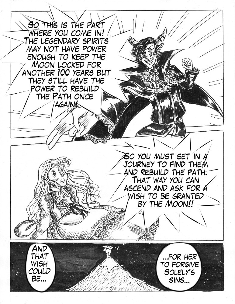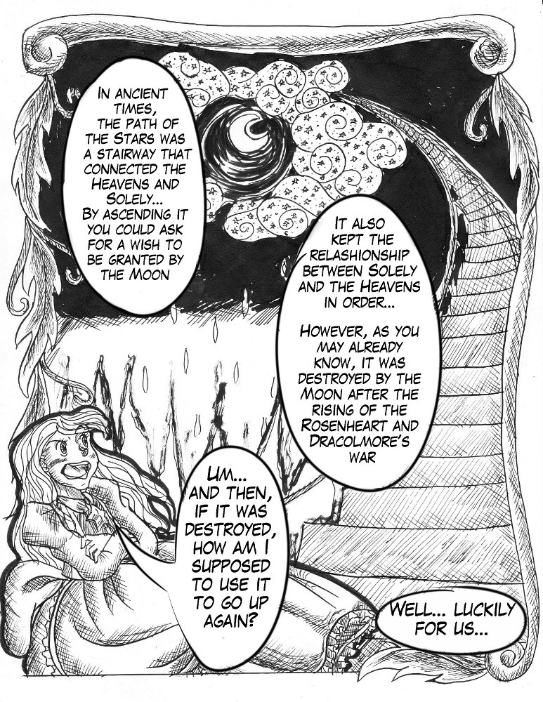 Tells the story of Tsukiko, a star that once fell from the sky as a shooting star (and landed in a country named Solely) and her journey to return home. However, that return may be full of challenges, being one of those to find the "Five legendary spirits" to rebuild the path to Heaven; also, she'll have to deal with a war between two powerful and rich families and, most importantly, face her own past.