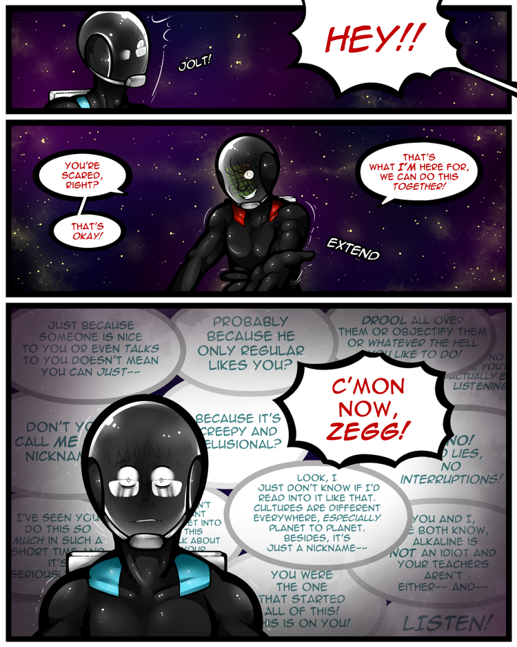 Zeggy-- an alien and real creep, attends the acclaimed Space School for his telekinetic powers. Upon meeting the attractive transfer student, Alkaline, Zeggy soon learns that if he doesn't address his own bad attitude-- he'll never form the genuine relationships he desires so much.