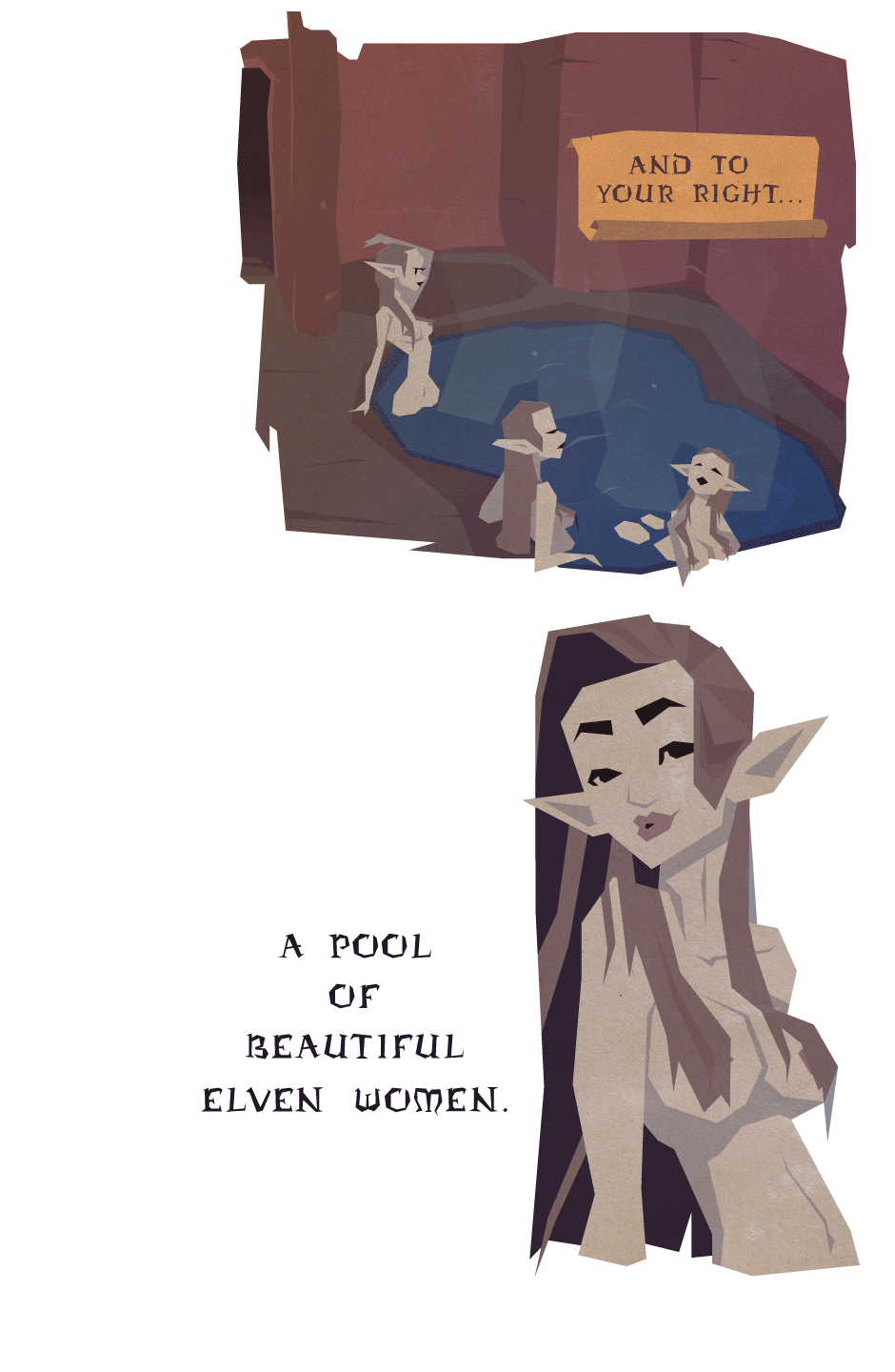 EVENT: Politely greet the beautiful women, and ask them where the door and stairway lead.