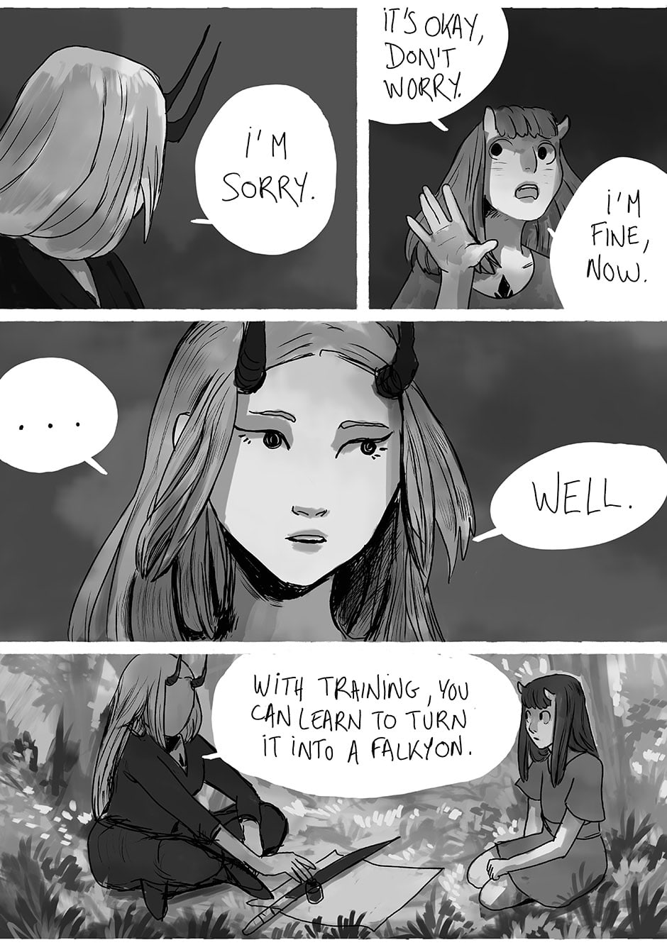 Next week, Falkyon is on hiatus. Also I made a website where you can read page by page! http://falkyon.lores.space/comic/falkyon-61/ (I added a small border so that it looks less weird if you're scrolling on tapas!)