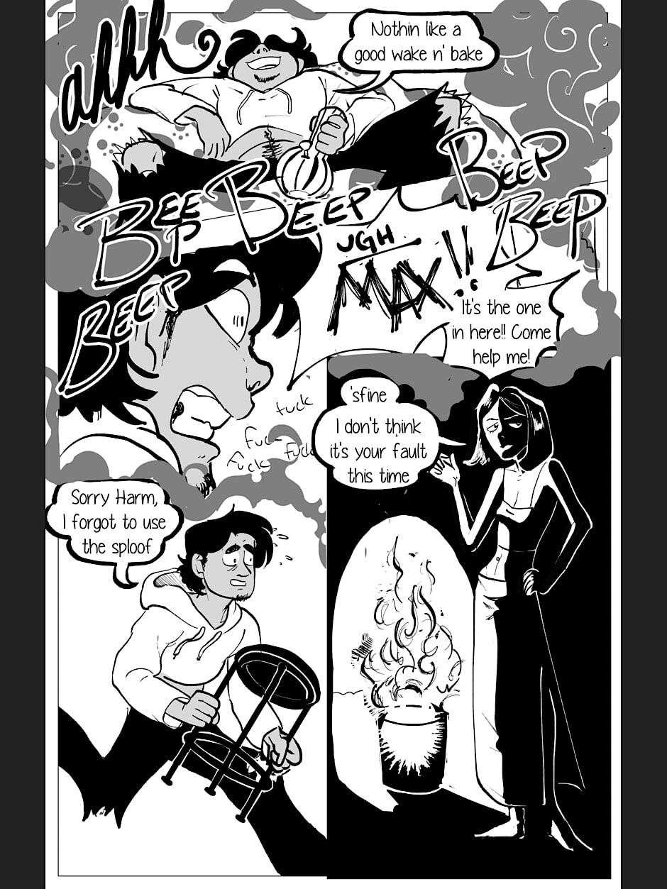 Well....Max and Harmony sure are good friends. If you want a more ~intimate~ look at what they got up to between pages 8 and 9, you can get And They Were Roommates at itch.io/Boys-Love for $5! Includes page 8 uncensored as well as 5 pussy-lickin good extra pages!