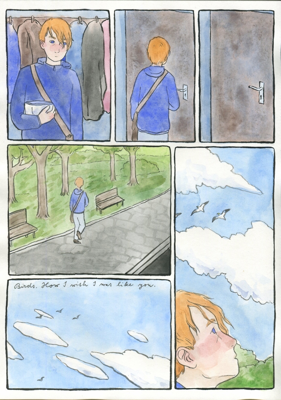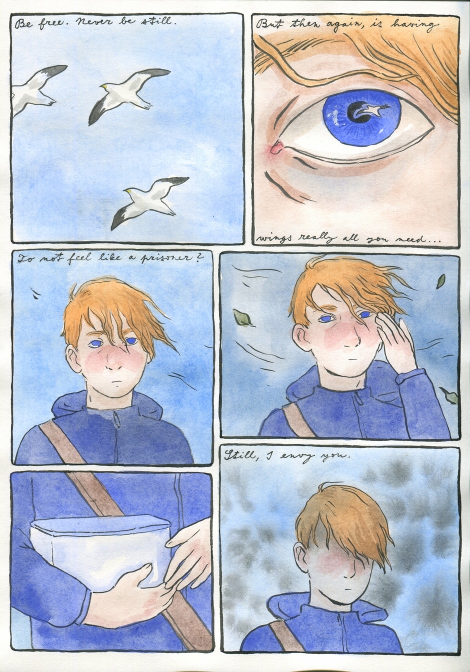 A story of four friends, each one of them fighting battles that no one else sees. A graphic novel about how much we hide from the ones we love, physical and mental wounds, compassion, friendship and recovery (and sky).