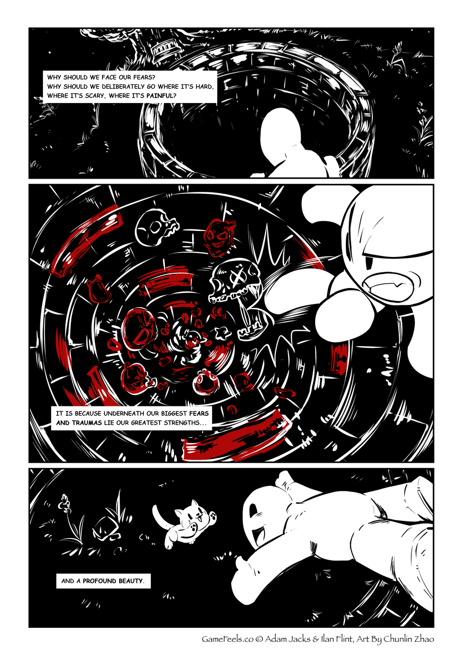GameFeels is a creative collaboration between Adam Jacks and Ilan Flint, two childhood friends and gaming buddies who decided to channel their mutual love and appreciation of video games into another form of expression – a weekly comic celebrating the poetic beauty, emotion, insight, inspiration and absurdity they observe within digital interactive art.