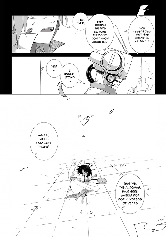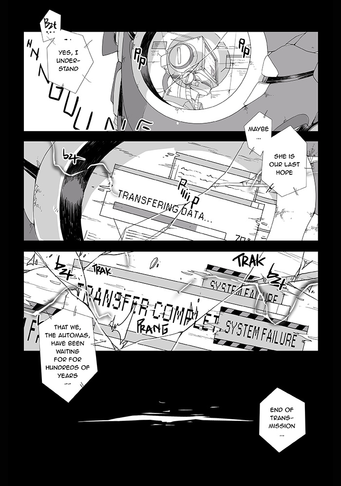 500 years after the end of human civilization and drastic change of earth caused by wars, in order to survive, mankind use their advance technology to transfer their mind into mechanical body called Automa. After so many decades passed, what left from the past glory of human is a few surviving number of Automa and old Droids who lived within the ruins of human civilization.