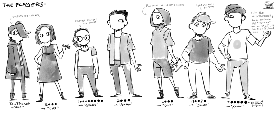 And also I drew a sketchy diagram of how each player looks based purely on my memory and this is how I will depict them if they ever show up in the pages again