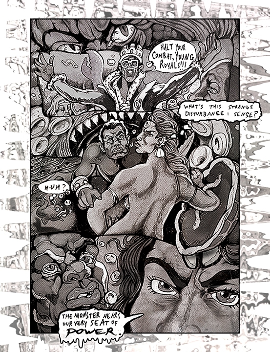 the monster's face in the top panel is reflected in neshama's gaze