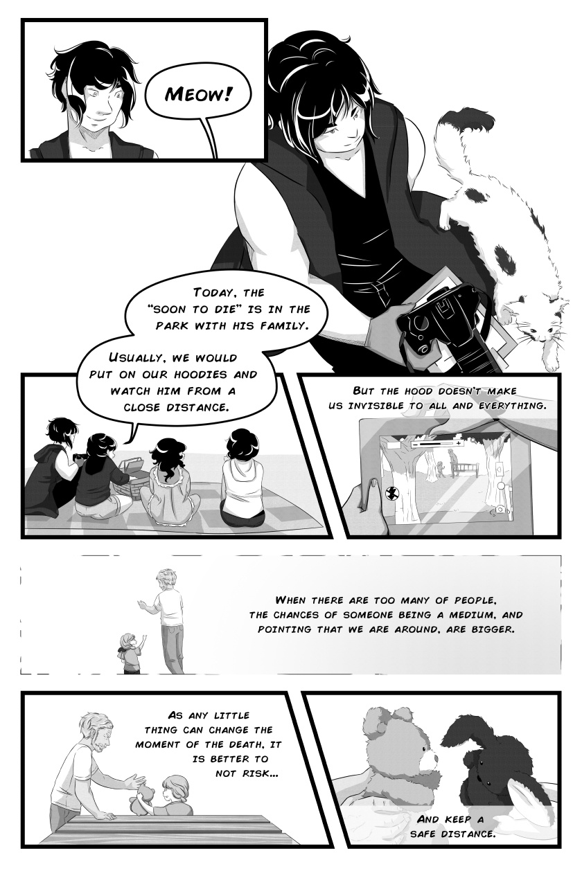 Look who is back!! Yeah, you guys favorite enders! This page was sketched since january, but I didn't have the time or energy to finish it. But here it is! End. is back, but it won't be posted once a week anymore, I also have to work on Delphinium, and I have my cool animation classes, so wish me luck /o/ That cat <3