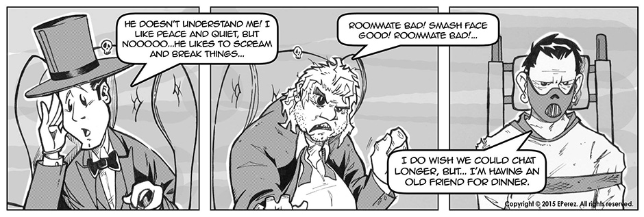 Zombies searching the lost and found for missing parts! The Invisible Man stealing the Headless Horseman's pumpkin! It's never a dull moment at the Bates Senior Center...