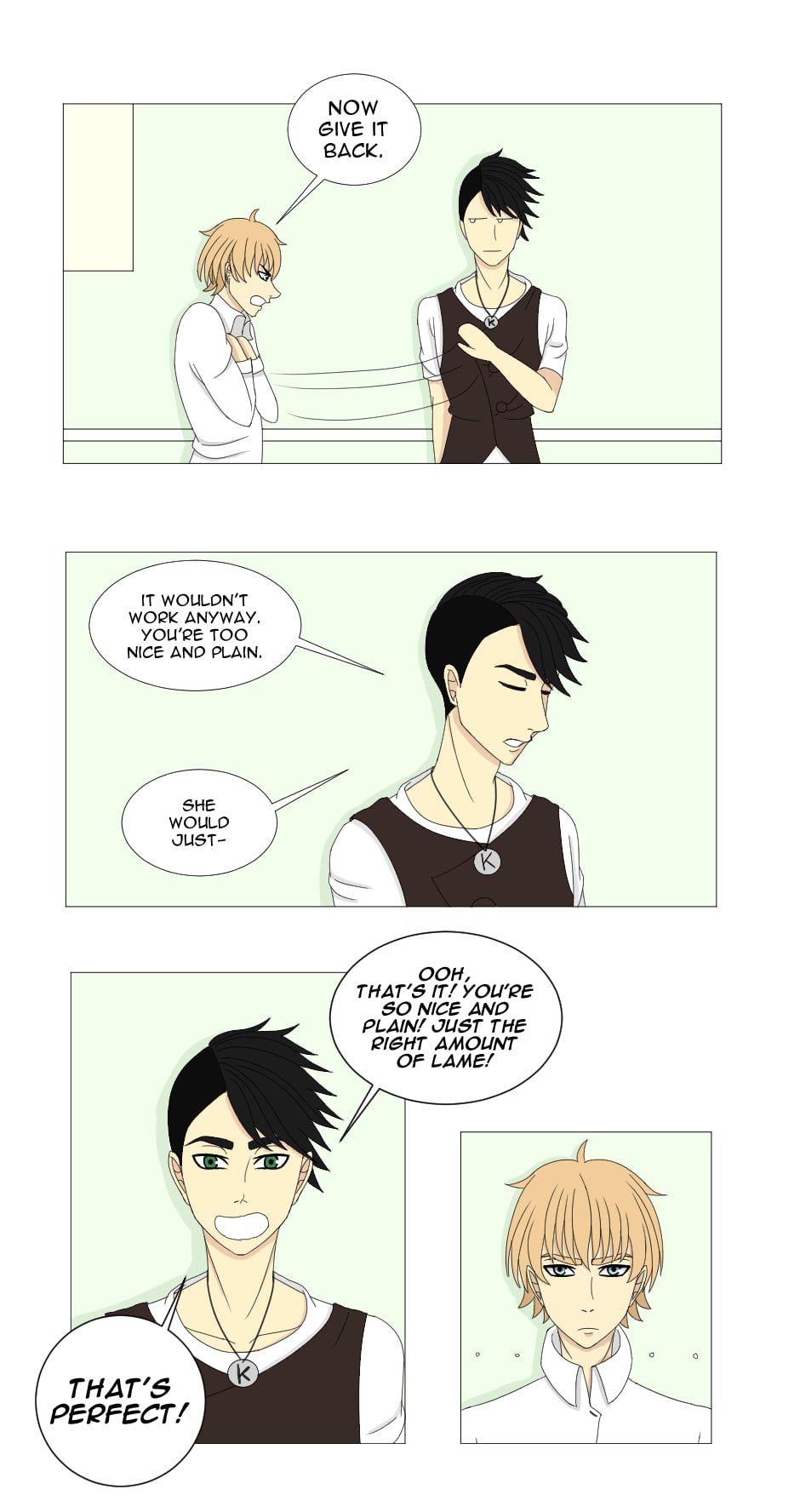 Kei Kojima is, according to the most reliable source of all – himself – perfect in every way. Handsome, rich, skilled, he can count to ten: what else do you need? Shame that his father and head of the modeling agency he works for agree to disagree. In order to keep his current lifestyle, our tragic hero finds himself involved with Eiji Ikeda, a plain waiter that somehow keeps bumping into Kei. Will these random encounters actually lead to something?