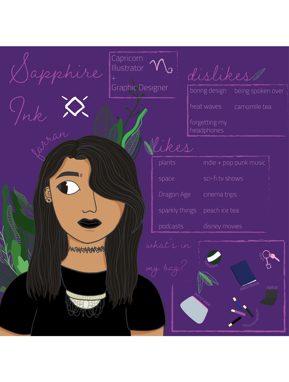 Farran is a graphic designer and illustrator with an affinity for drawing skeletons and plants. A lot of their inspiration comes from nature and Gustav Klimt. If there's the opportunity to add gold to a painting, they've already done it