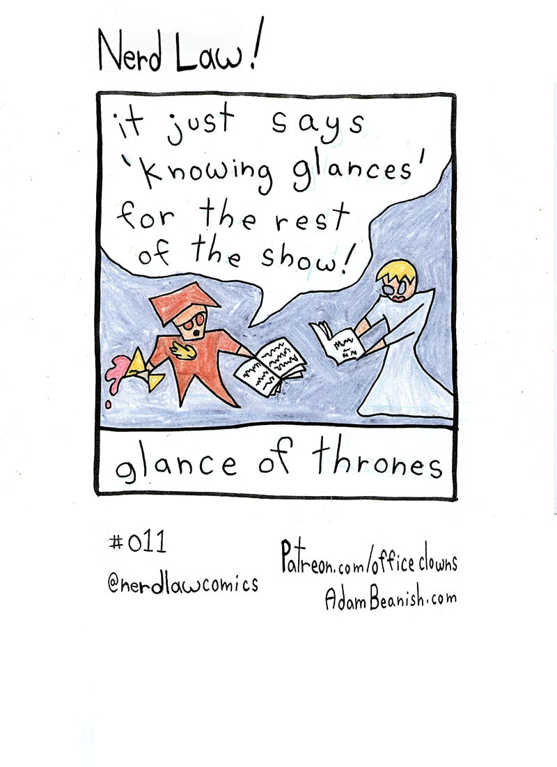 Glance of Thrones. #Tyrion #Cersei #GOT #GameOfThrones #thronesofswords #specialeffects #knowingglances #nerdlawcomics @nerdlawcomics READ THE REST! https://tapas.io/series/Nerd-Law/ PAY MY RENT! Patreon.com/officeclowns AdamBeanish.com @adambeanishart @officeclowns @nerdlawcomics