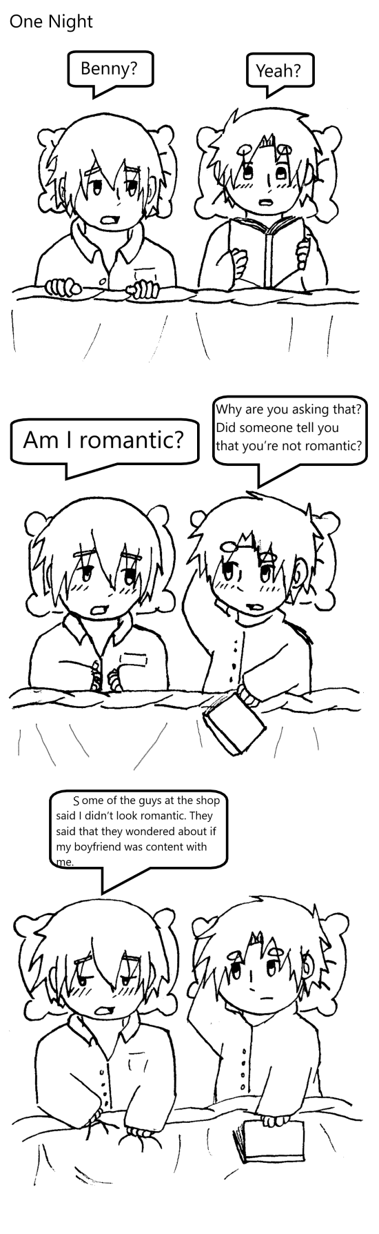 Benjamin (nicknamed Benny) is a spunky, affectionate, and easily tempered goofball who doesn’t know how to sing, loves to cook, loves playing video games, and loves spending time with his boyfriend whom he’s living together with.