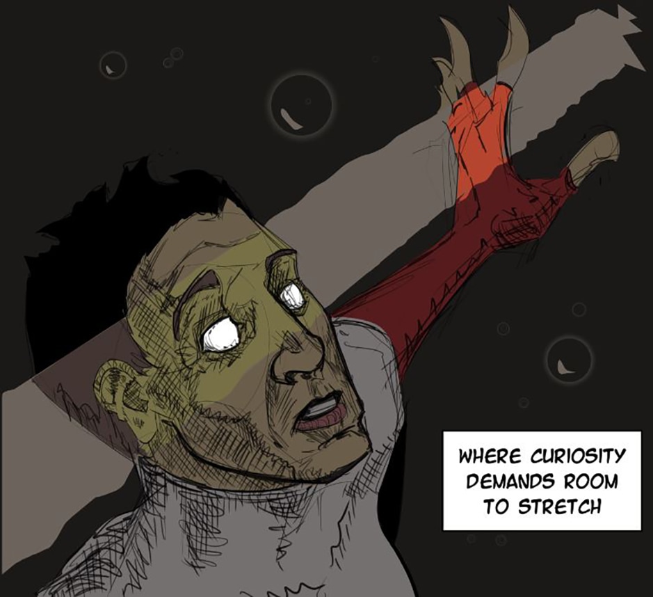 Reforge is an experiment. One panel will be released every weekday, telling the story in "real" time, one instance at a time. It will delve into Jungian psychoanalysis, metaphysics, and creativity. As I draw, the art will be allowed to have agency, informing details of the plot, and while Reforge is part stream-of-consciousness, there is a backstory, a plot spine, and an end goal. Everything else is exploration. That includes reader feedback, which may steer details as well.