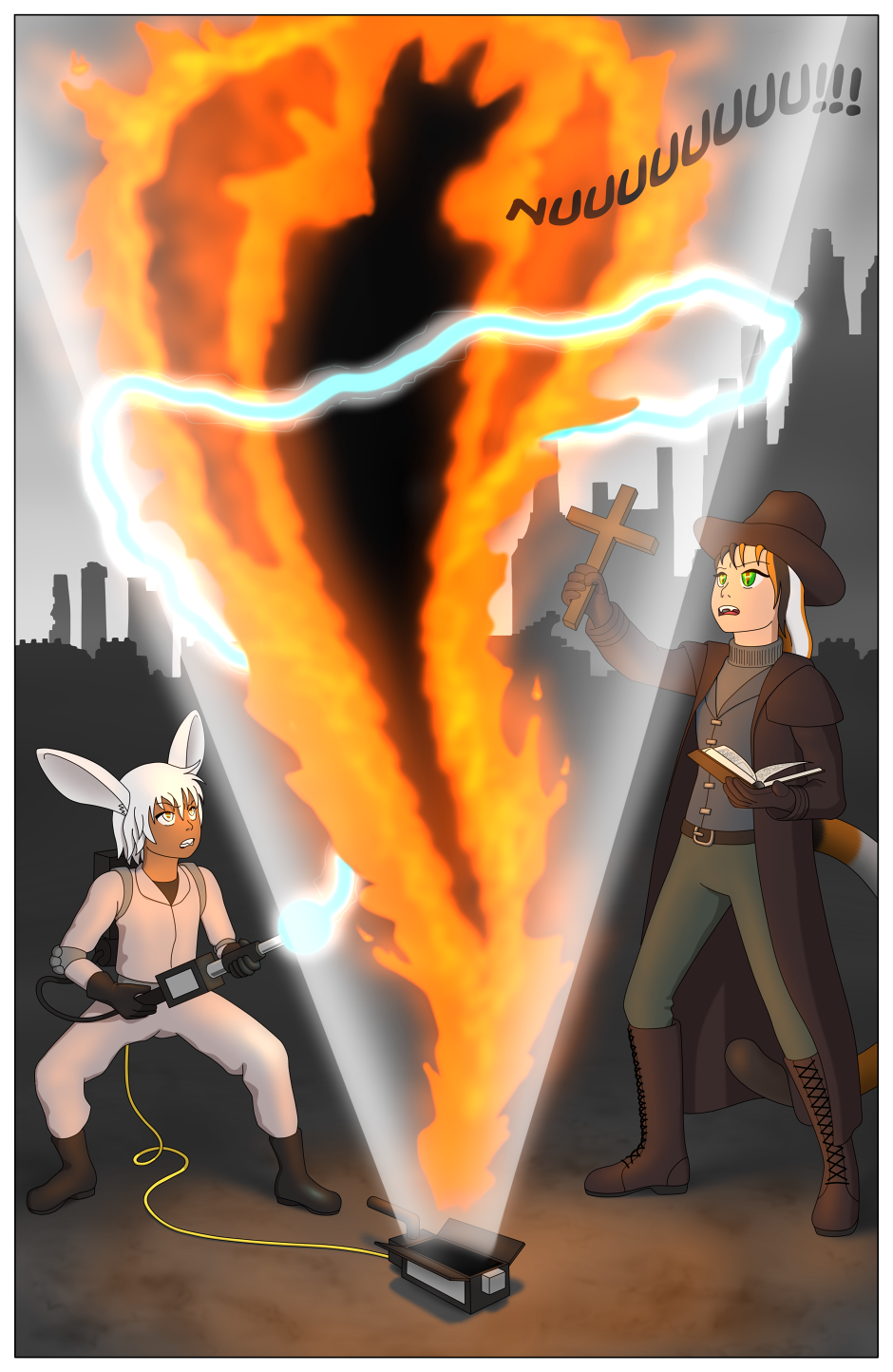 Calico-Van-Helsing and Milk vanquish some pesky little ghost, called Sauron or something.