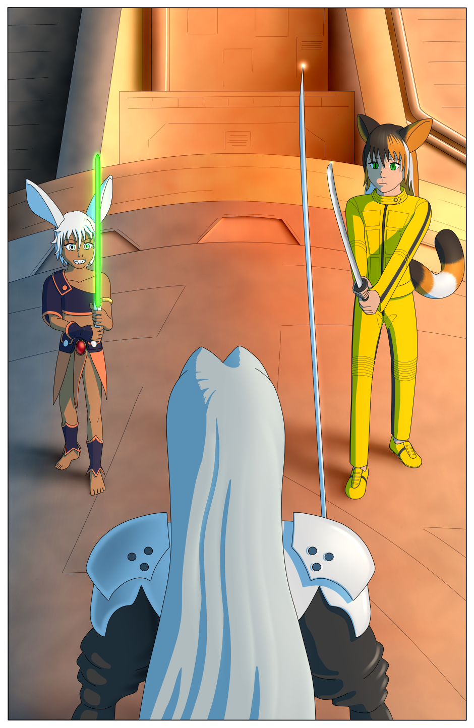 Milk, in Wilykit's garb, wielding a lightsaber, while Calico, in... ESTUANS! INTERIUS! IRA! VEHEMENTI! ESTUANS! INTERIUS! IRA! VEHEMENTI! SEPHIROTH!