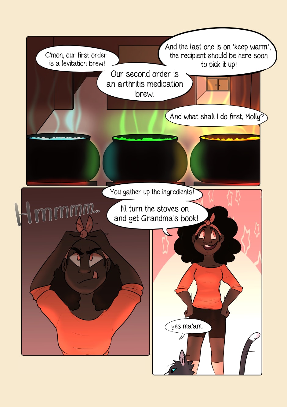 Back home from getting her master's degree in potion brewing, Molly Pond has returned to her hometown with her Familiar, Aubergine, to start their brewery. Her life’s dream is to be a famous brewer, just like her grandmother; Aubergine has helped her every step of the way, as any good Witch’s Familiar worth their salt would be.
