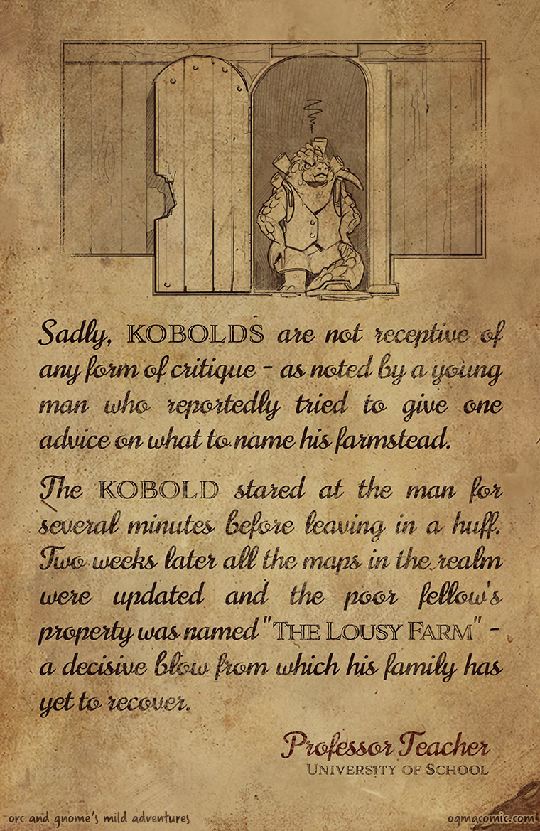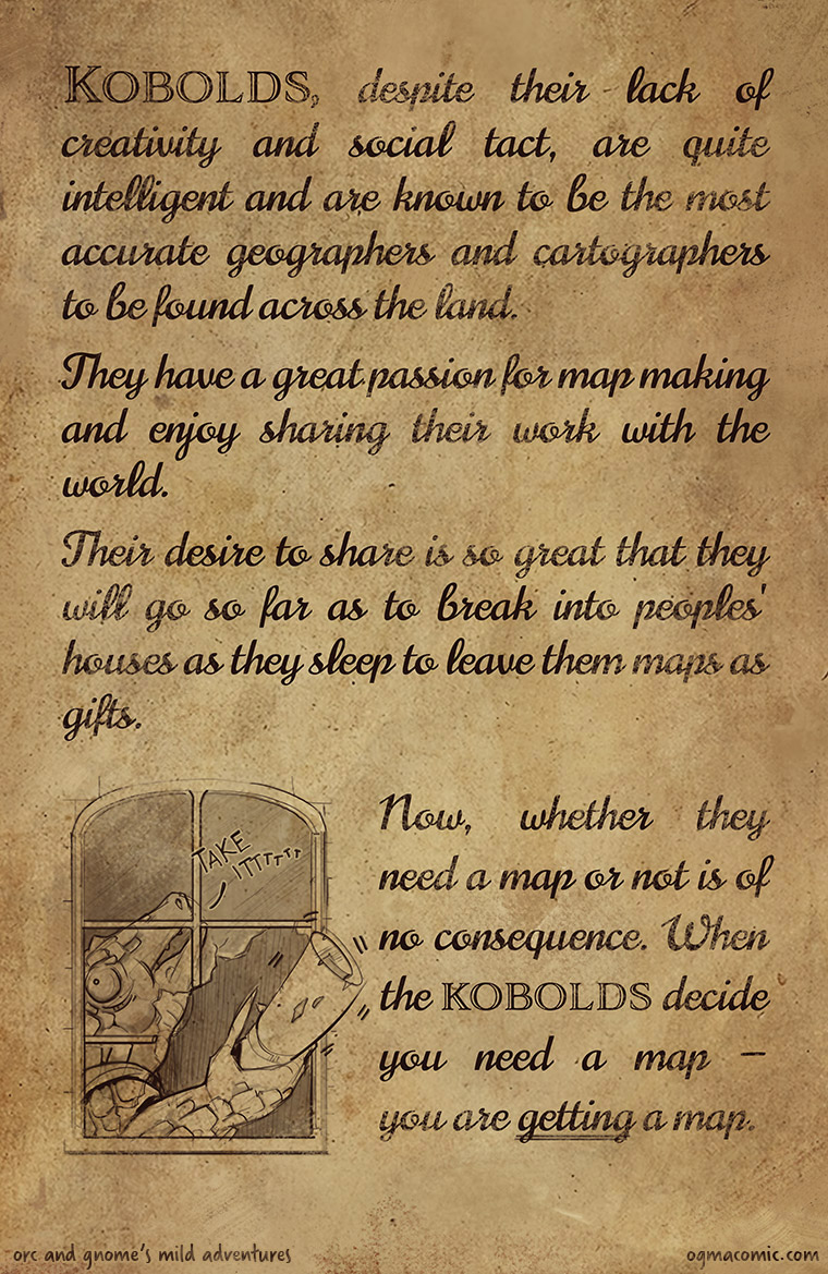 Our first bit of lore! These map-obsessed kobolds end up making fairly frequent appearances in Orc and Gnome's Mild Adventures.