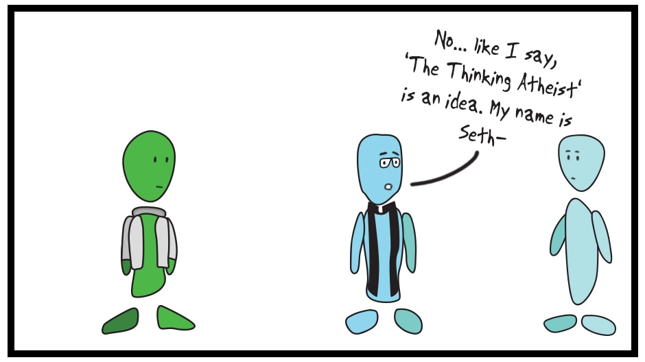 Presenters often call him 'The Thinking Atheist' even though that's more the idea and community than his name. I just find it funny how often he tries to correct it.