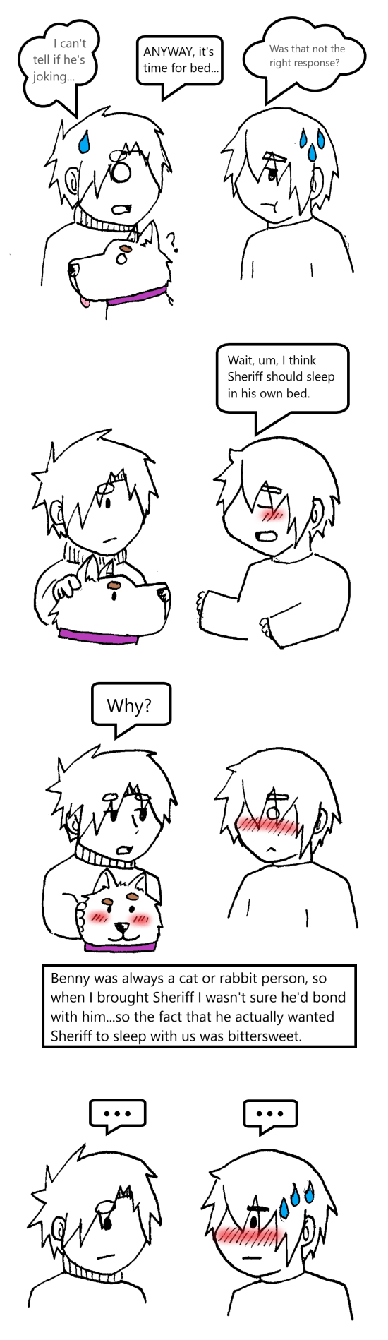 Benjamin (nicknamed Benny) is a spunky, affectionate, and easily tempered goofball who doesn’t know how to sing, loves to cook, loves playing video games, and loves spending time with his boyfriend whom he’s living together with.