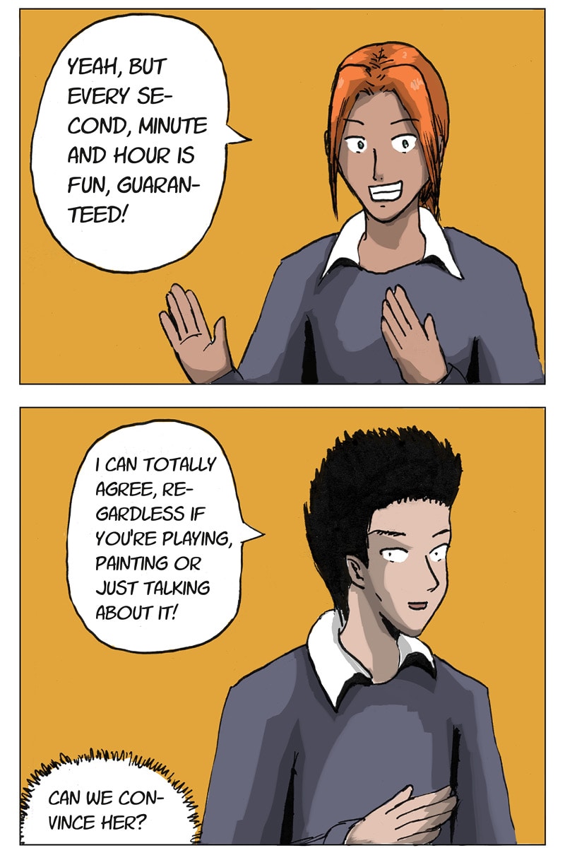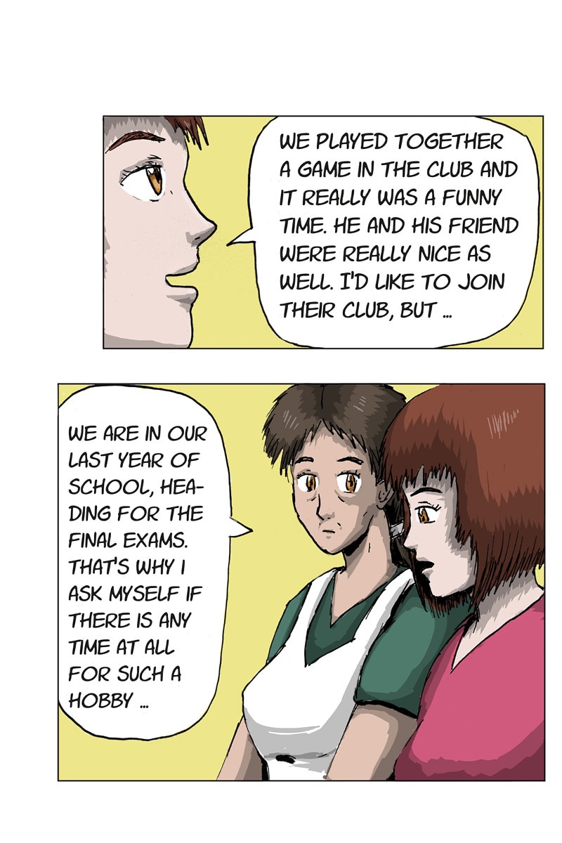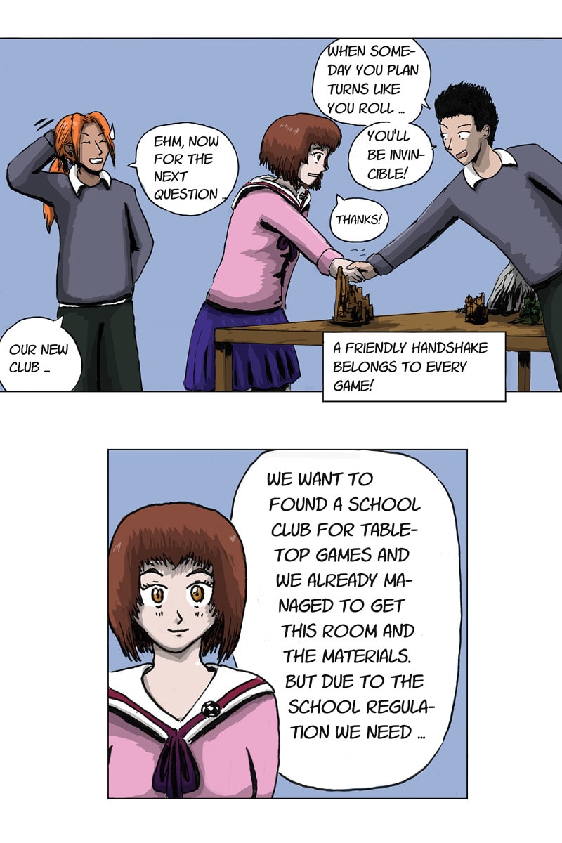 It's the beginning of the last school year and Juno's already preparing for the final exams, when suddenly Mika and his hobby - tabletop miniature wargaming - enter her life. Join the Tabletop Club! A school romance comic for every fan of the hobby and those who want to learn more about it.