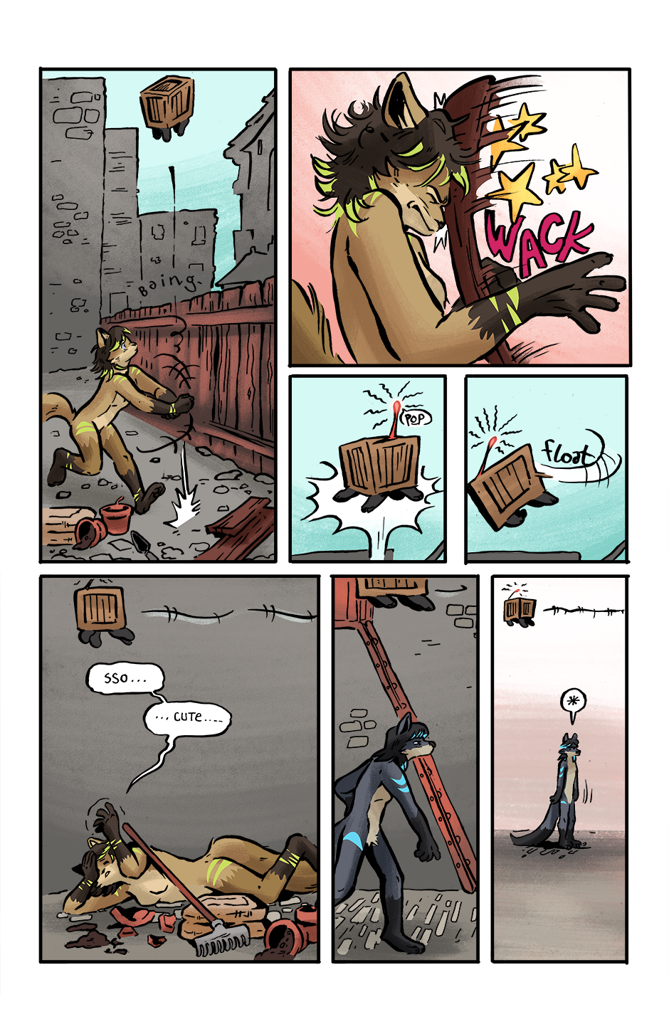 Just as Jade goes to grab the crate, it launches into the air! Jade meets a board, and Takkin becomes confused.