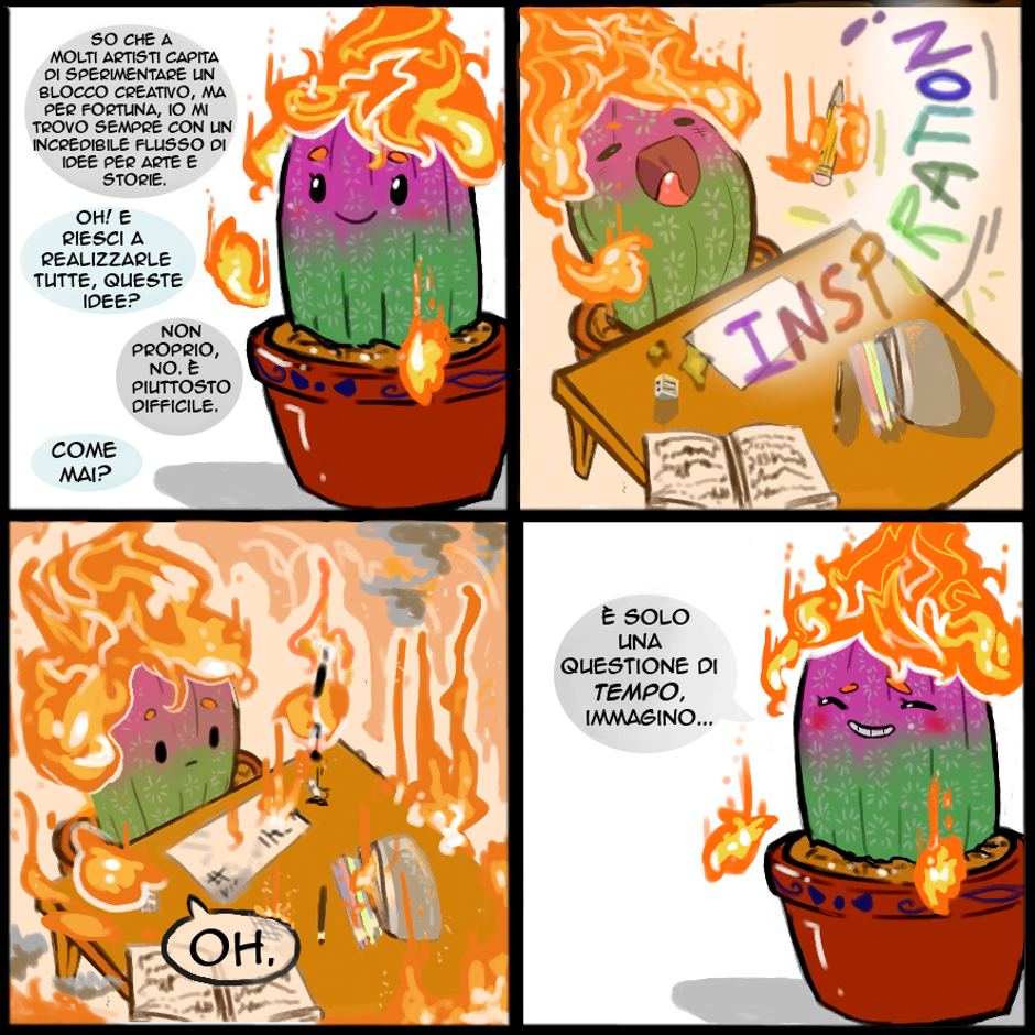 I Cactus di Fuoco sono SEMPRE ispirati! Solo che è difficile realizzare tutto contemporaneamente... e a volte si finisce per essere stanchi e "bruciati". Neanche noi siamo macchine. Siamo Cactus.