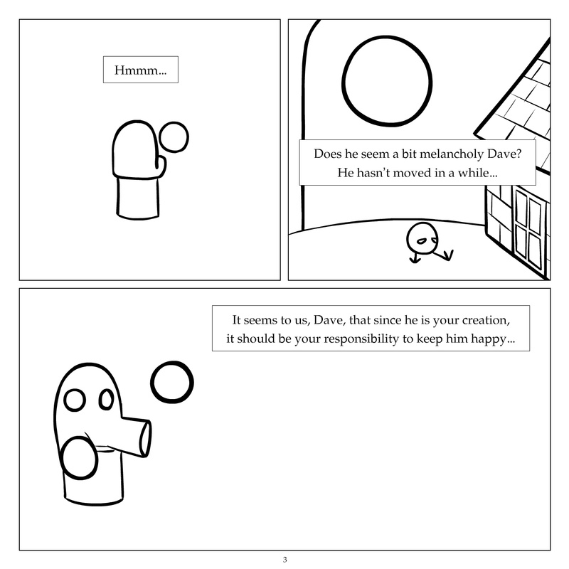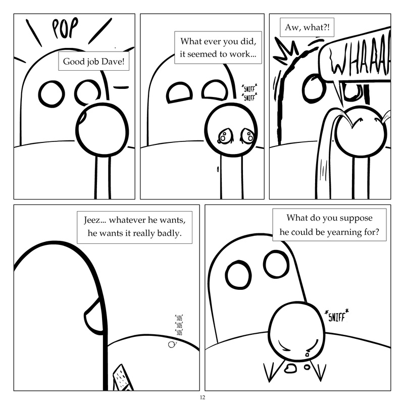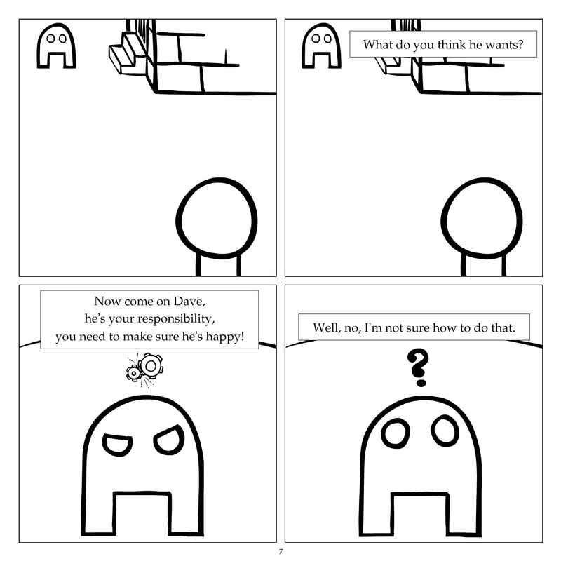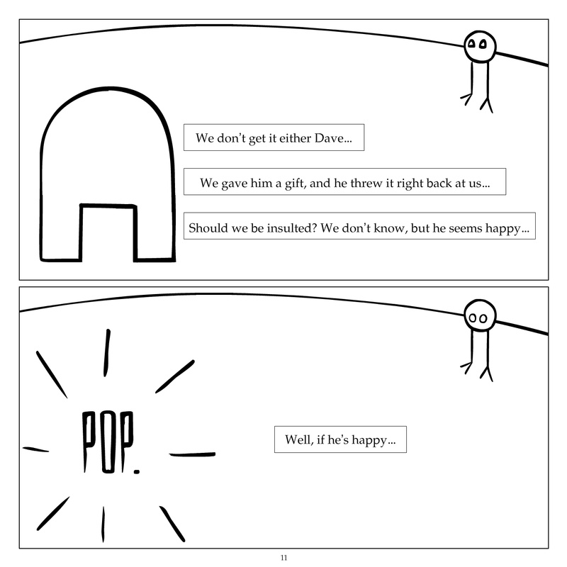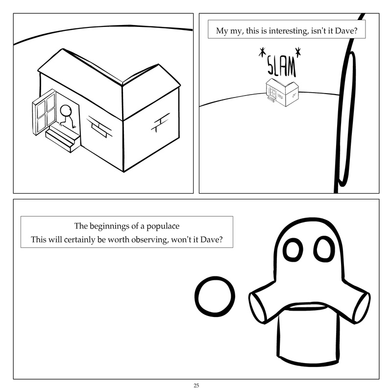 Dave's Wurld is a completed series about a child-like being living in an empty wurld. Dave has just discovered he has legs, and already he is on a journey of discovery, first to seek a shiny object which may or may not exist, and then to seek his purpose. Dave's Wurld has humble beginnings, but a simple act from Dave explodes into a universe of people and places, as well as Dave's rival, Anti-Dave. Dave will learn what it means to be worshiped by his people, loved and indeed hated, but will he learn responsibility? the fate of his wurld may depend on it.