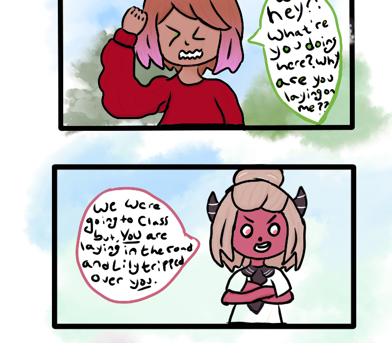 This page was lined and inked by Se, she's not a professional artist but she did the best she could. What do you think about the watercolor backgrounds?