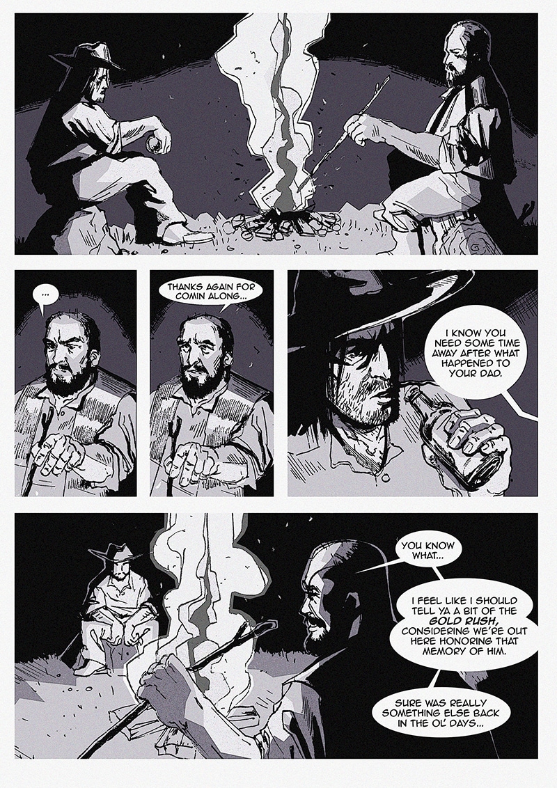 1885 - The Wild West. An uncle and his nephew go on a journey to find one of the last remaining gold sources to honour the memory of one of their family members who worked in the gold mines during the Gold Rush in 49. The trip quickly turns sideways, as the nephew gets more and more obsessed with the idea of getting rich and ditching his uncle. This is a project I did for uni and it's supposed to be informative, but I added a short story around it :) enjoy!