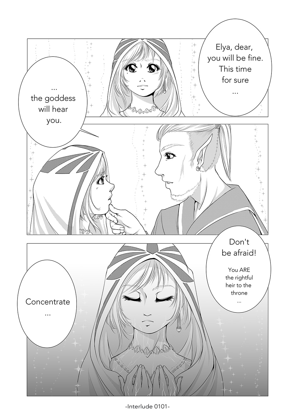 "Embers to Stars" is a web comic about two girls, Elya and Fraie, who find themselves on a journey together, while they couldn't be any more different in character. After a series of events at Elya's coronation ceremony - following the untimely death of the kingdom's monarch - Fraie decides to join her to find the truth behind those happenings. On the run from authorities, they travel the land and come across various cultures, bringing them ever closer to a much greater mystery.