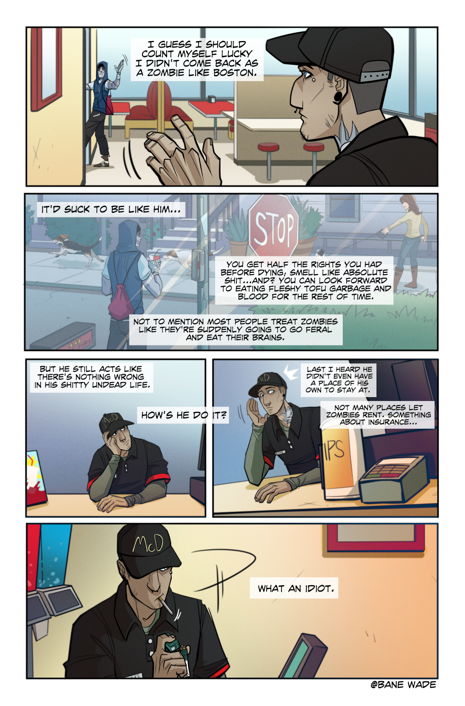 BLAKE reflects on his encounter with his zombie bro, Boston. And is edgy about it. ALSO I drew some cute pups in the background that belong to my patrons!