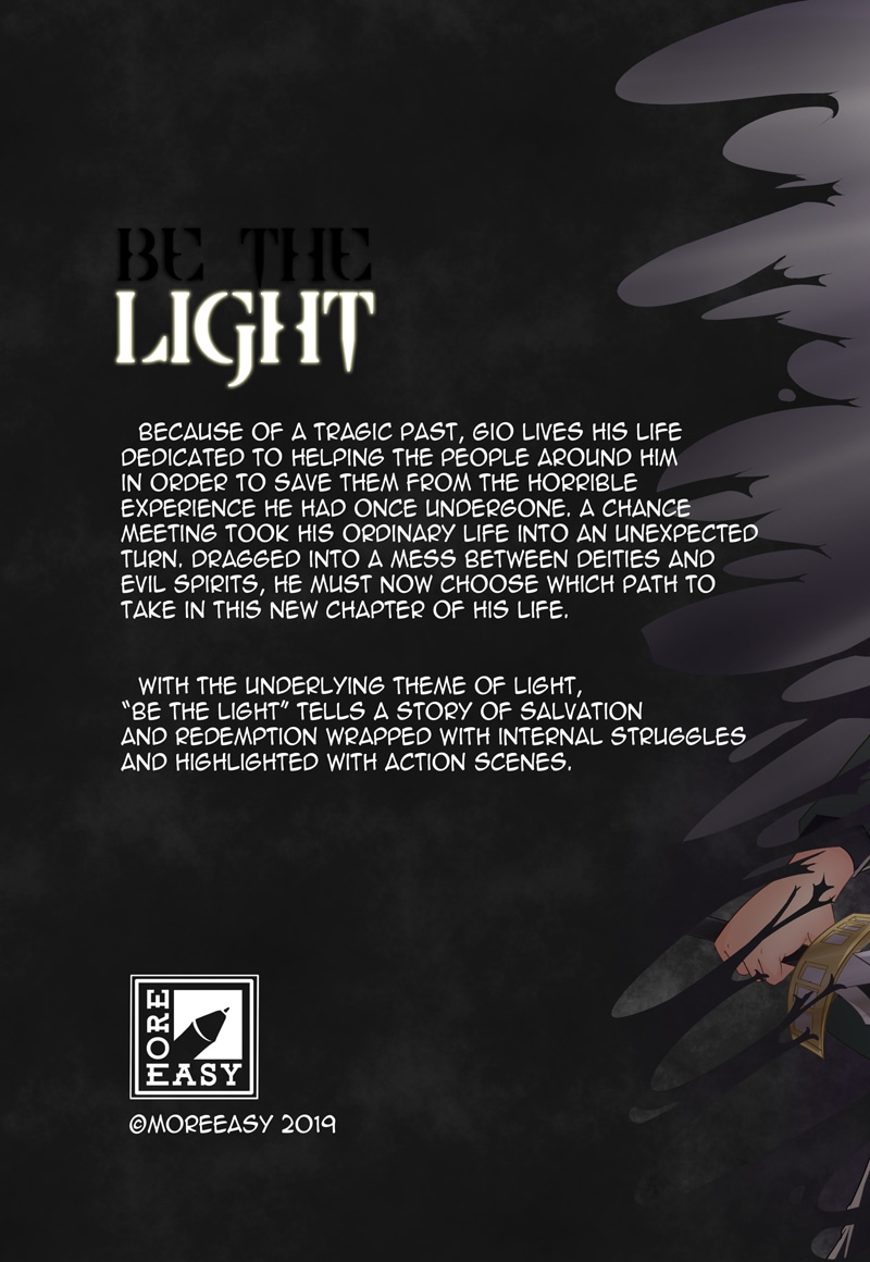 Because of a tragic past, Gio lives his life dedicated to helping the people around him in order to save them from the horrible experience he had once undergone. A chance meeting took his ordinary life into an unexpected turn. Dragged into a mess between deities and evil spirits, he must now choose which path to take in this new chapter of his life.
