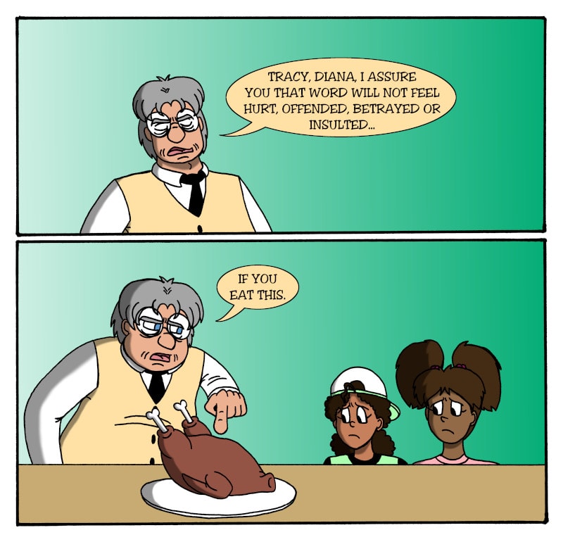 Word really wouldn't. In fact, parrots eat chicken. They're omnivores. It's not cannibalism or inappropriate in any way. They're not the same animal, folks. I mean, hawks eat chicken.