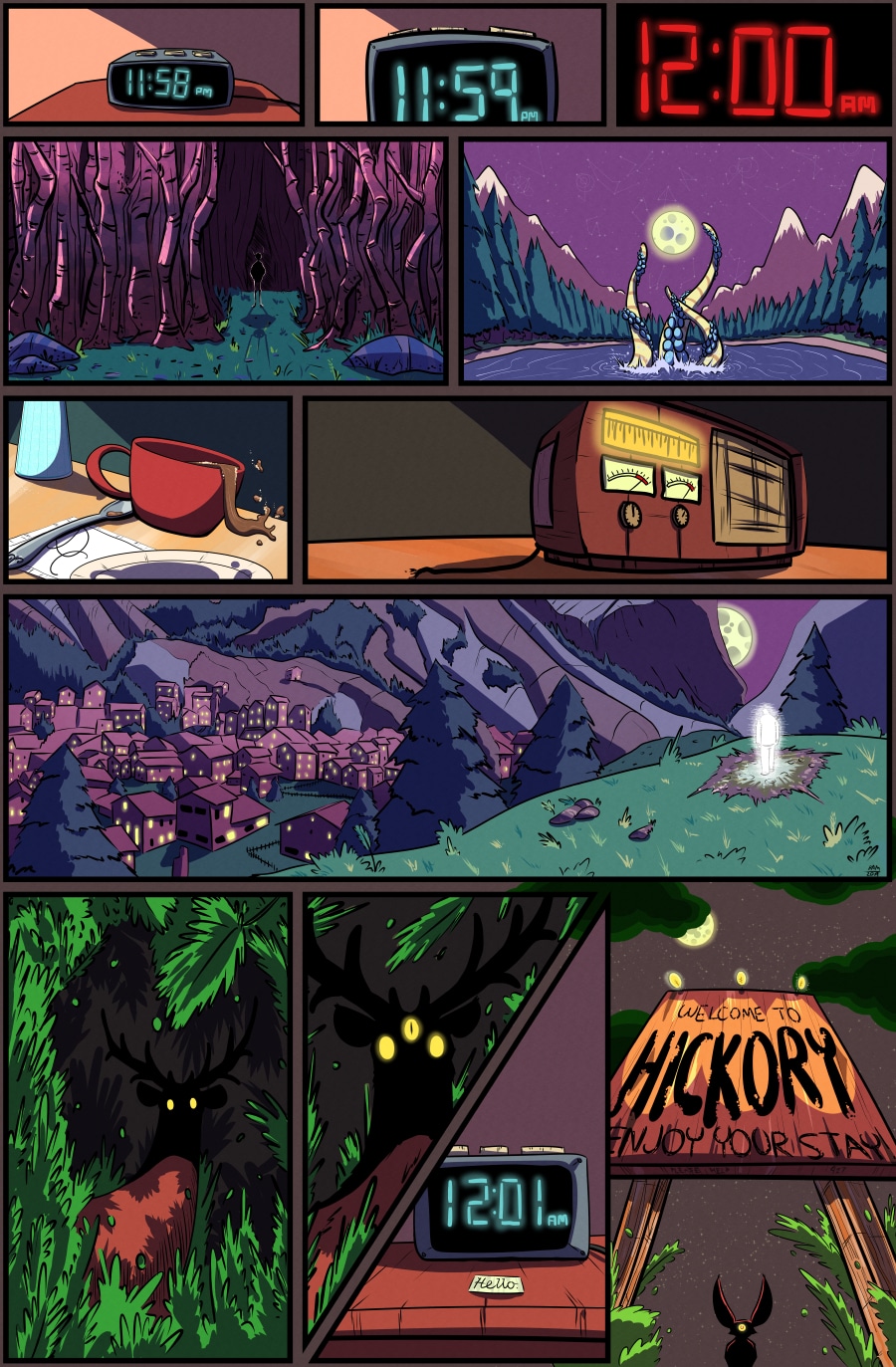 Our town is t̵̳̘̟̀̄̇͝r̵̬͉̰̼͐̓̆ŭ̸̯̬̯͍̃l̷̡̛͉̾ỷ̷̠̖̄͠ a sight to behold at m̷̰̏̓͛̕į̸̰͔̽͐̆d̵̞͎͗͑̅̑ñ̵̝́̕͠i̵̦̱͘g̶̻̙͓̽͋͂͝ĥ̵̻͆́ţ̵͖̮̲͗ Hey, wanna support my work? Consider dropping me a tip! ko-fi.com/bmurphyart Hickory pages are released several days earlier for Patrons! www.patreon.com/bryanmurphy