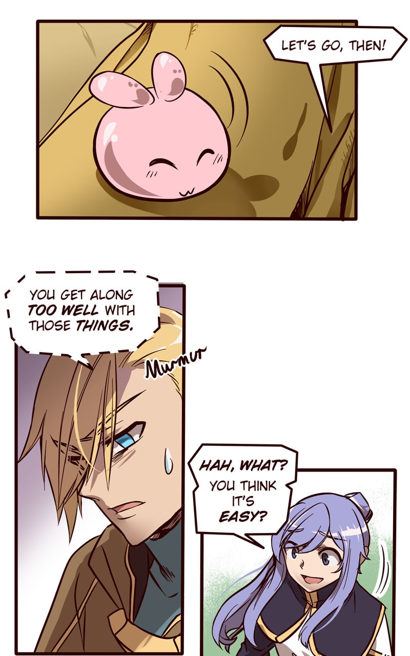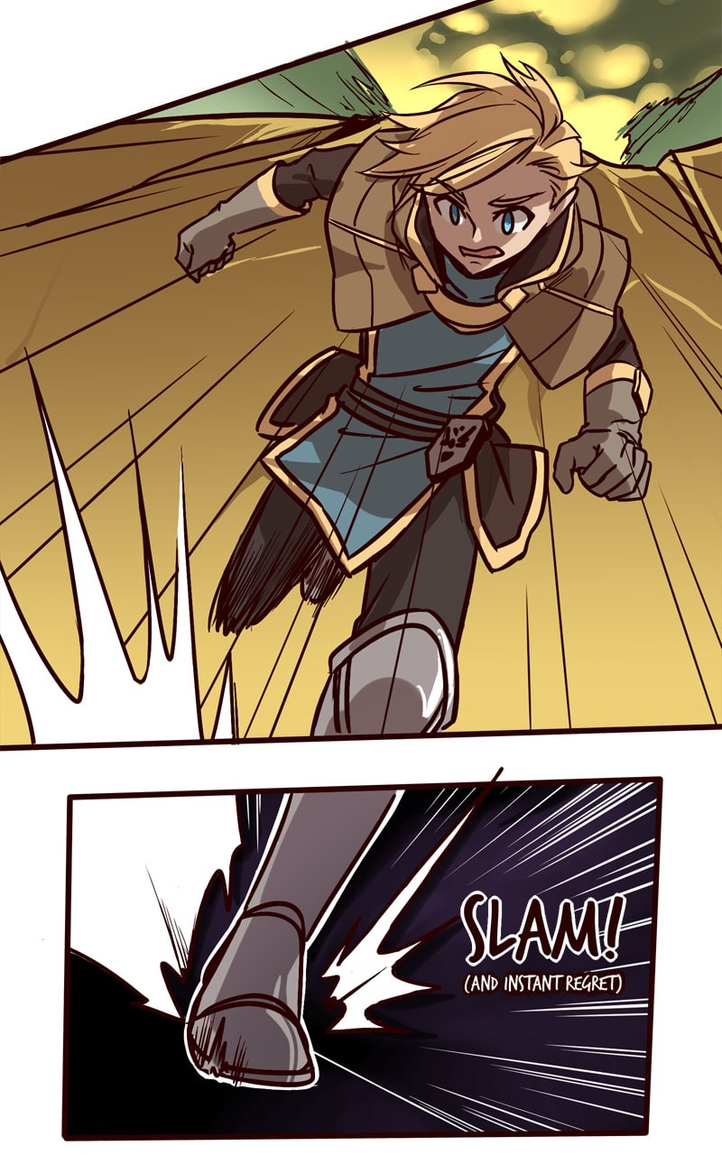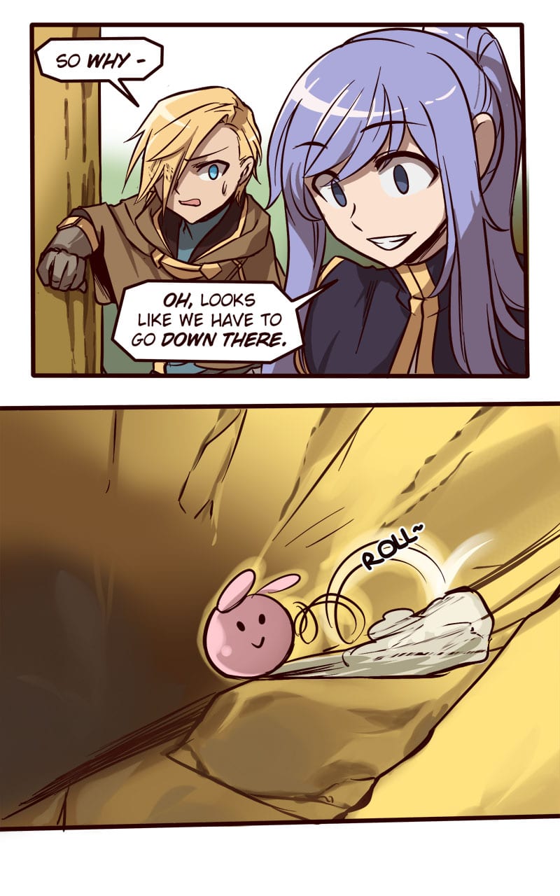 Rune was once one of the faceless rabble of Astin until one selfish little monster decided to ruin her day. Now she's falling off cliffs, fleeing from giant monsters with teeth, and worst of all, being yelled at :(