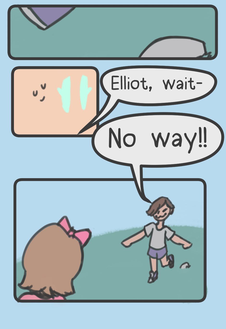double upload, because not much happens, except idiot boy falls over a rock, and this probably could have been one page but i'm bad at planning.