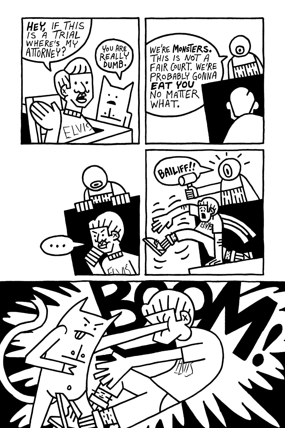 #Comic #black_and_white #court #trial #funny #splash #bleed #Action #punch #pow #hell #demons #devil