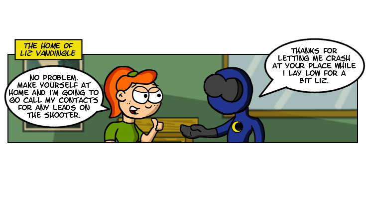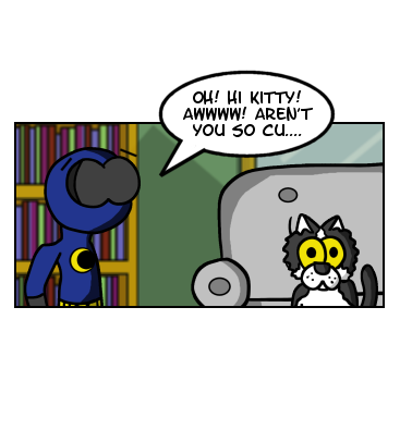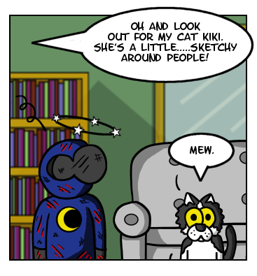 Looks like Nite Stick and Liz were able to avoid detection from the swarm of police at the Stick Pad and have made it to the home of Liz safe. Looks like we have yet another feline in the mix with KiKi, a some what sketchy cat to say the least. KiKi is based of off our 2nd cat Loki, who is the sister of Aleister the basis of Side Kick. Loki isn't as intentionally violent as seen here but she is a massive spaz and is prone to wig out with her claws out. She means well though. I think.